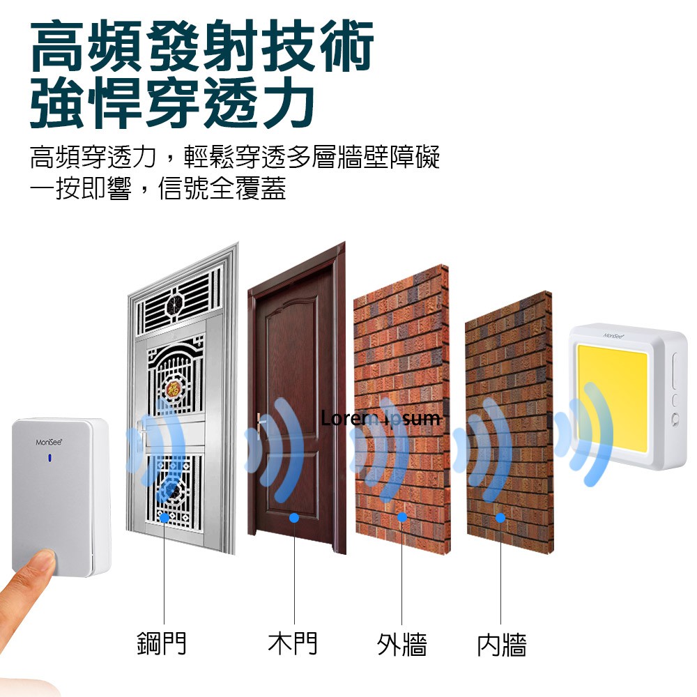 【MoniSee 莫尼希】【福利品】自動調光夜燈無線門鈴(自發電/套組/一對一) 小夜燈/辦公室門鈴/居家門鈴/音樂門鈴
