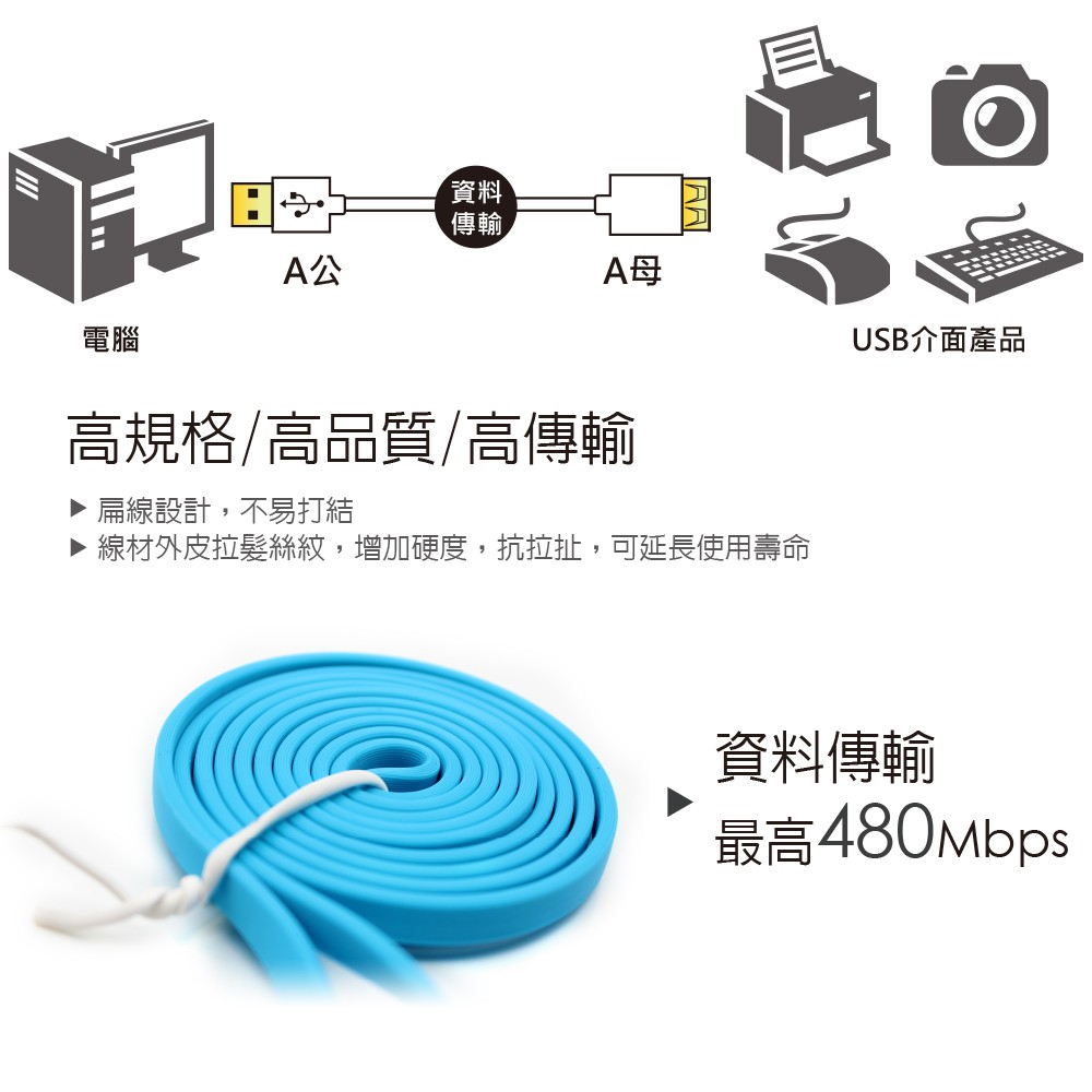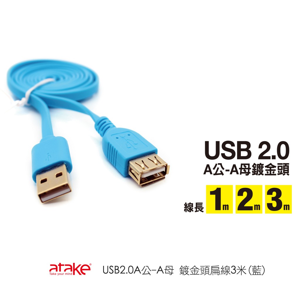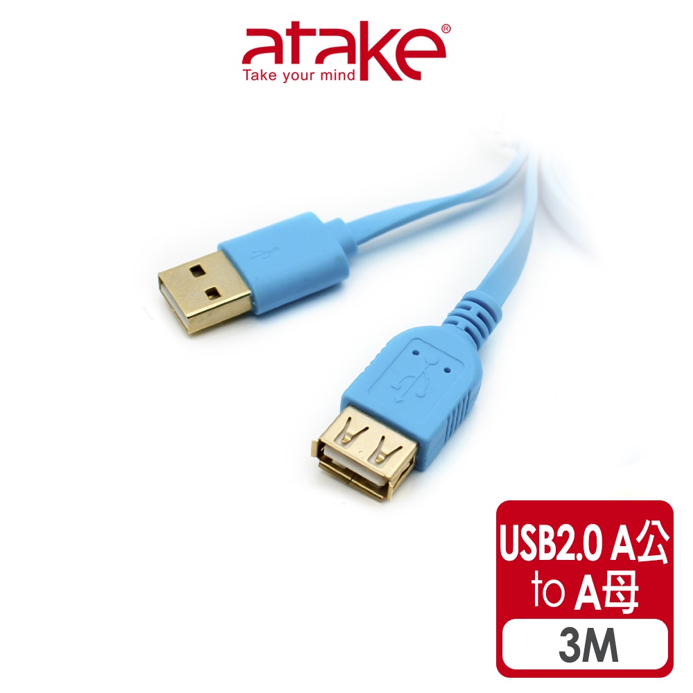 【atake】USB2.0延長線(3m/扁線) Type-A公對A母/傳輸線