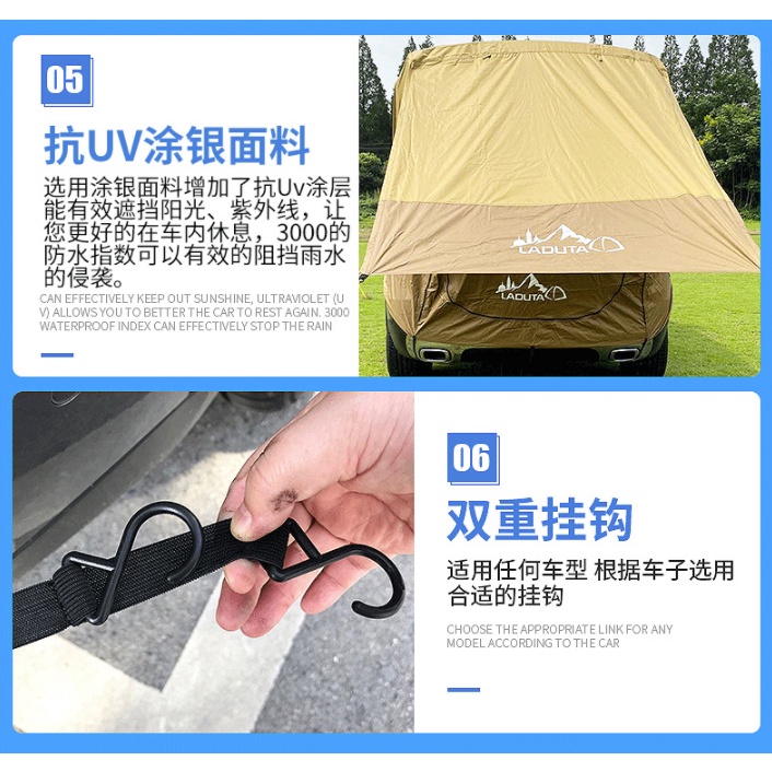 台灣出貨天幕+車尾帳篷紗網蚊帳車宿車泊車露 戶外 車尾帳 車後帳 燒烤 野營 簡易帳篷 車尾 延伸 遮陽 防雨 汽車帳篷