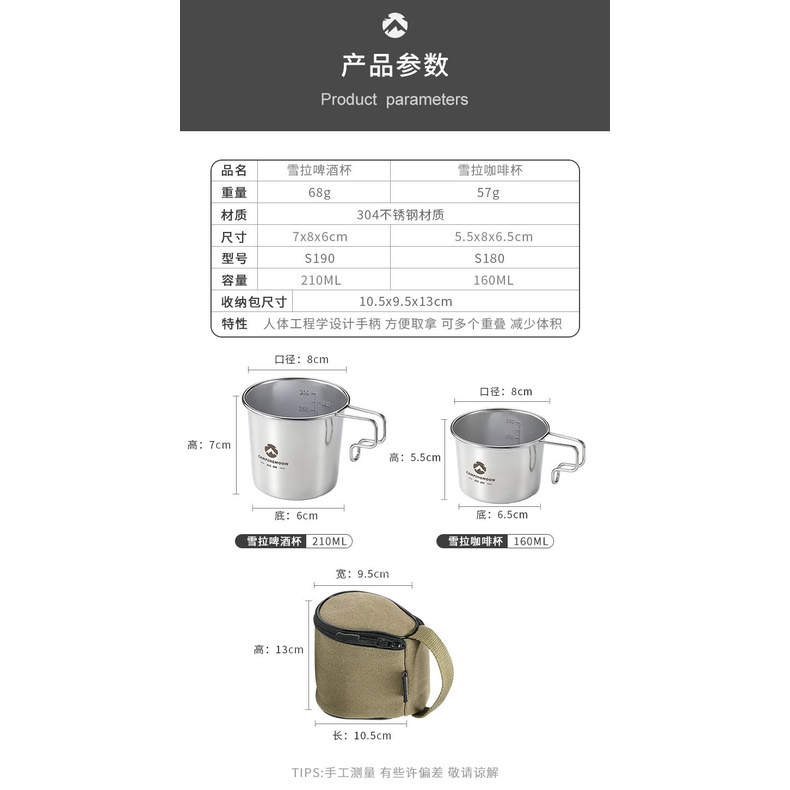 S180 柯曼 Campingmoon 160ml 雪拉杯 雪拉碗 304不鏽鋼 露營杯 可堆疊 户外露营不锈钢便携