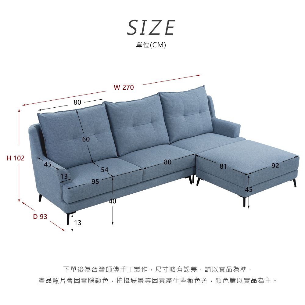 【H&D東稻家居】舒芙蕾防潑水涼感L型沙發/4人+凳沙發/台製沙發/手工沙發/可訂製
