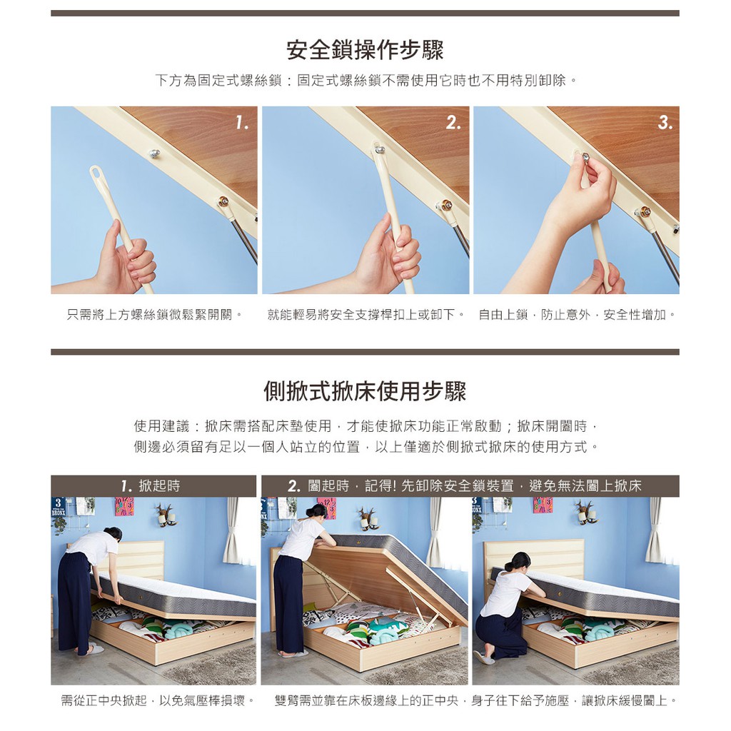 【H&D東稻家居】5尺雙人六分板側掀床/掀床/收納床底-3色(附安全鎖)
