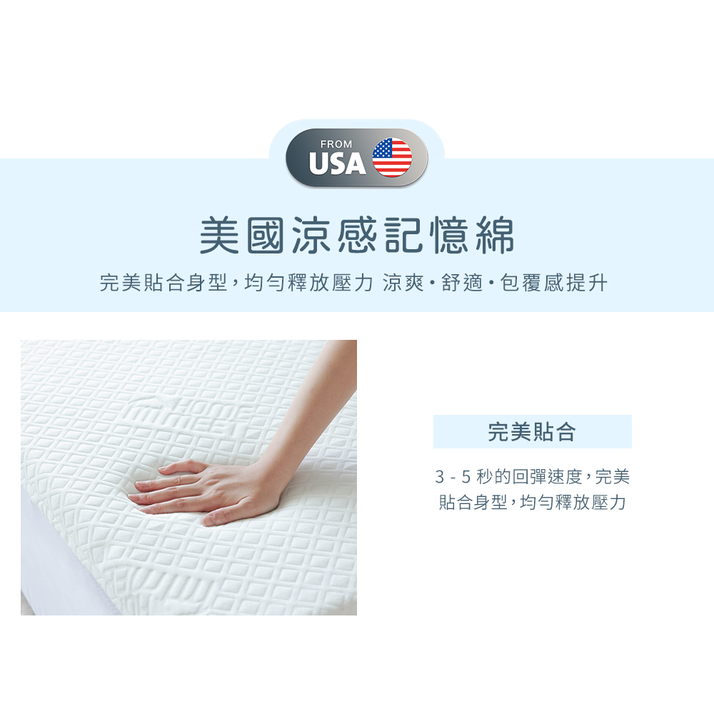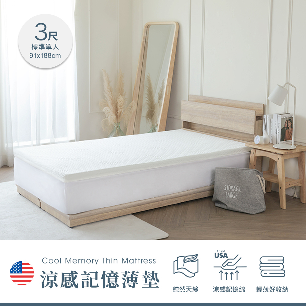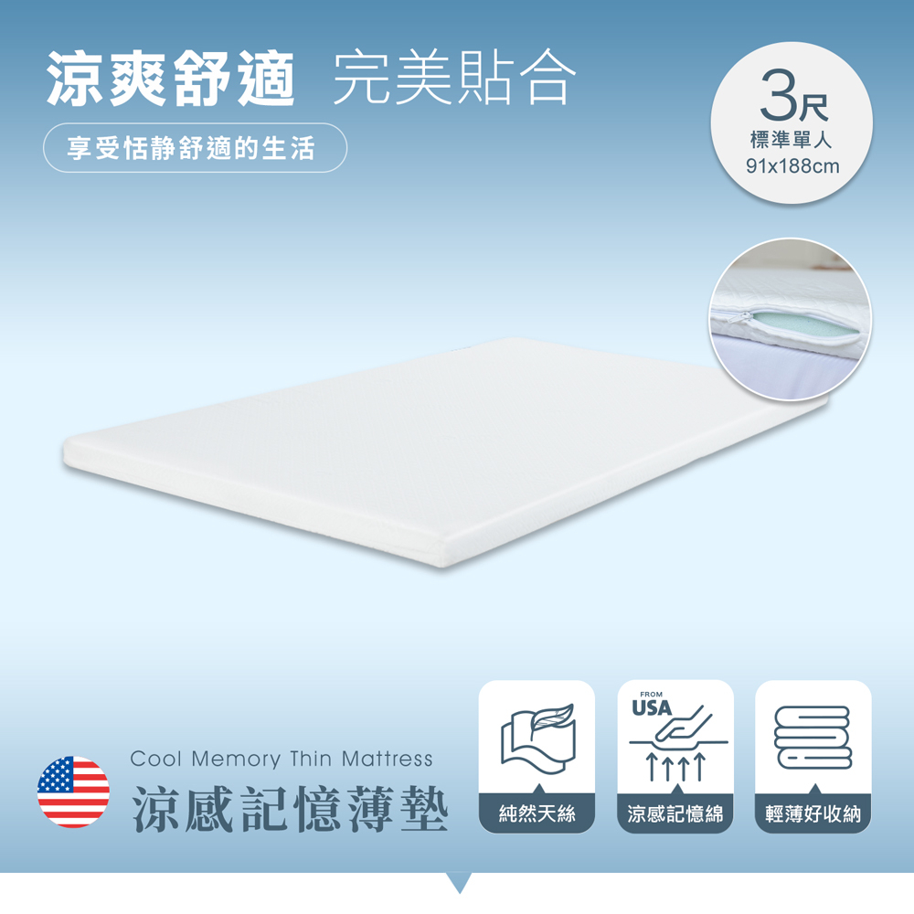 【H&D東稻家居】USA 涼感記憶薄墊-單人3尺/高度5CM/外宿族必備/記憶墊
