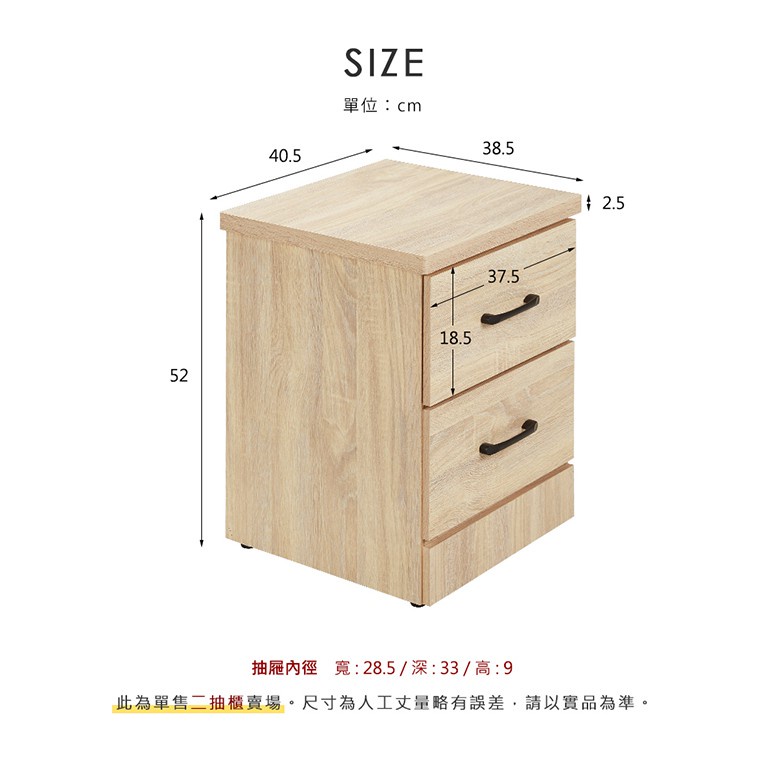 【H&D東稻家居】二抽床頭櫃/二抽櫃 收納櫃 床邊櫃-4色