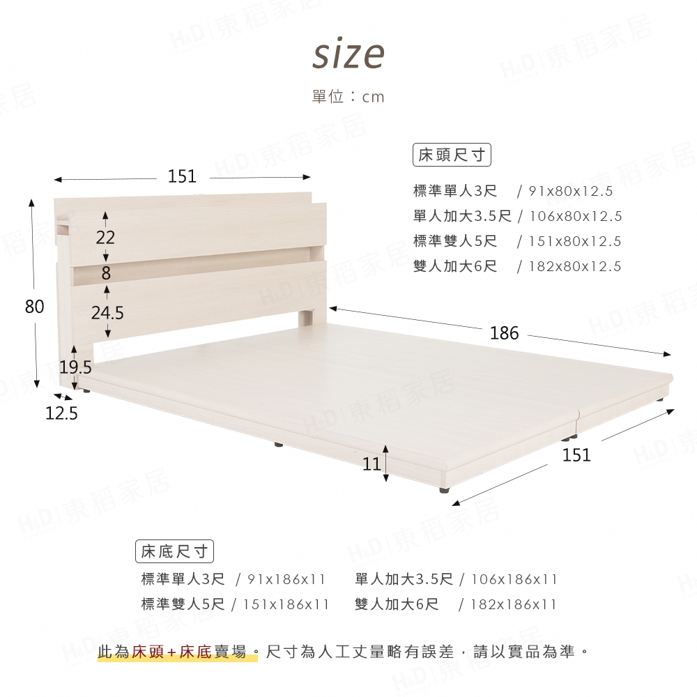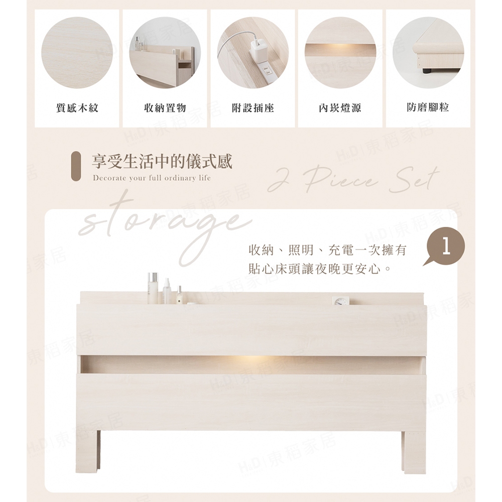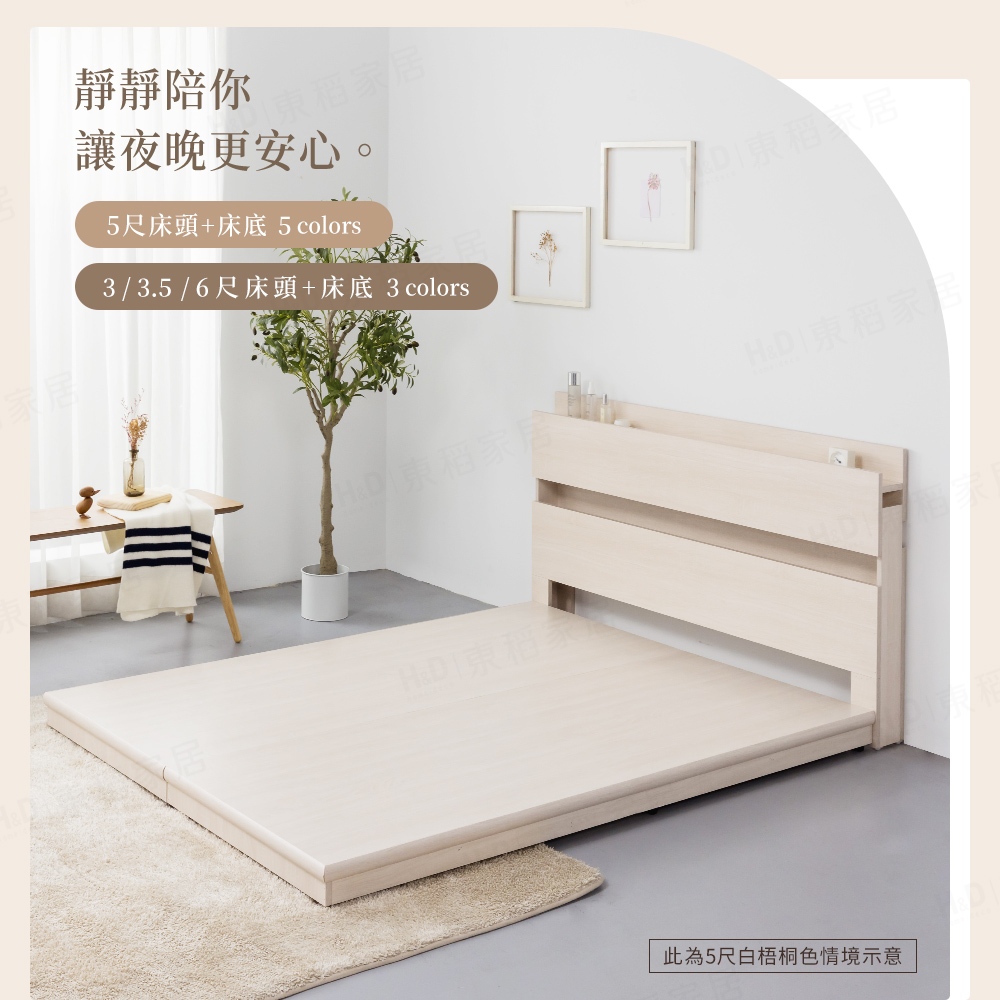 【H&D東稻家居】狄尼塔斯民宿風房間組/床頭/床底/床架(床頭+床底)-外宿族必買 單人 雙人加大床組 租屋首選