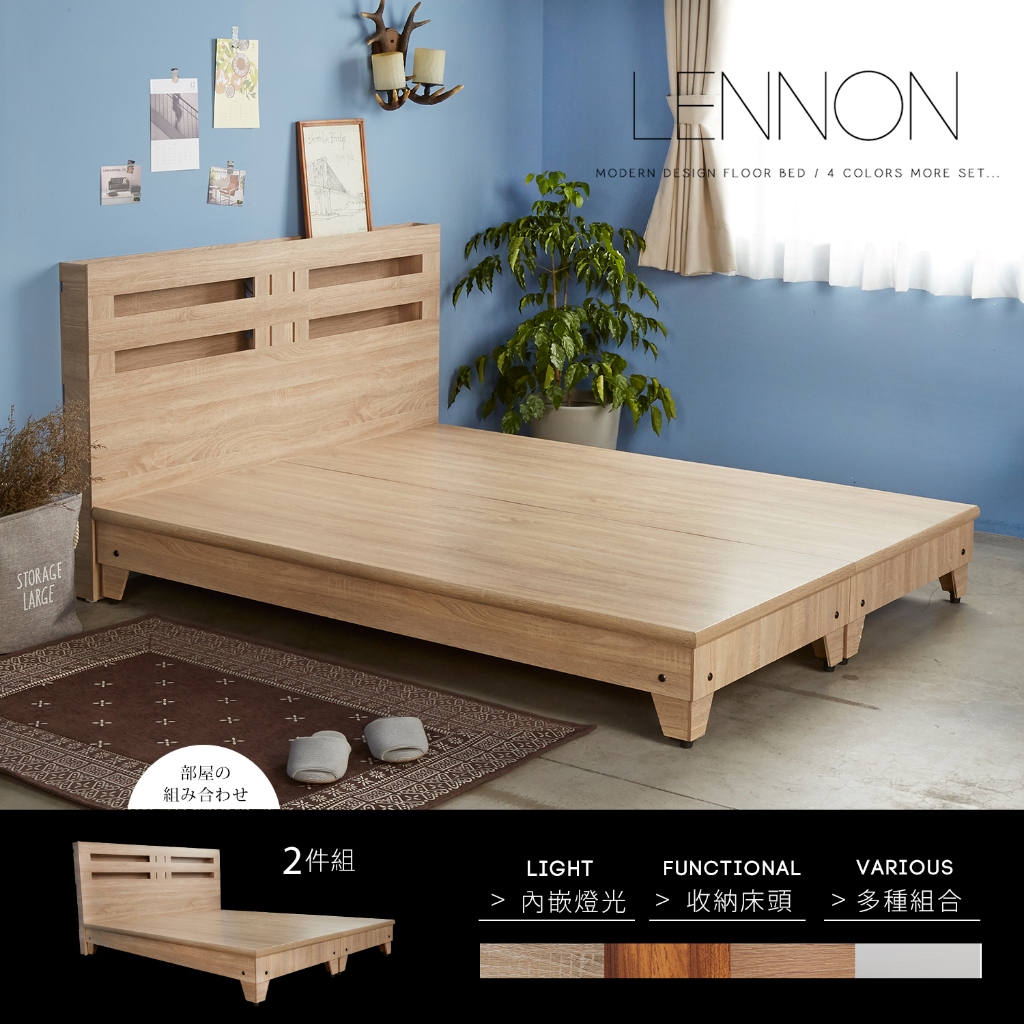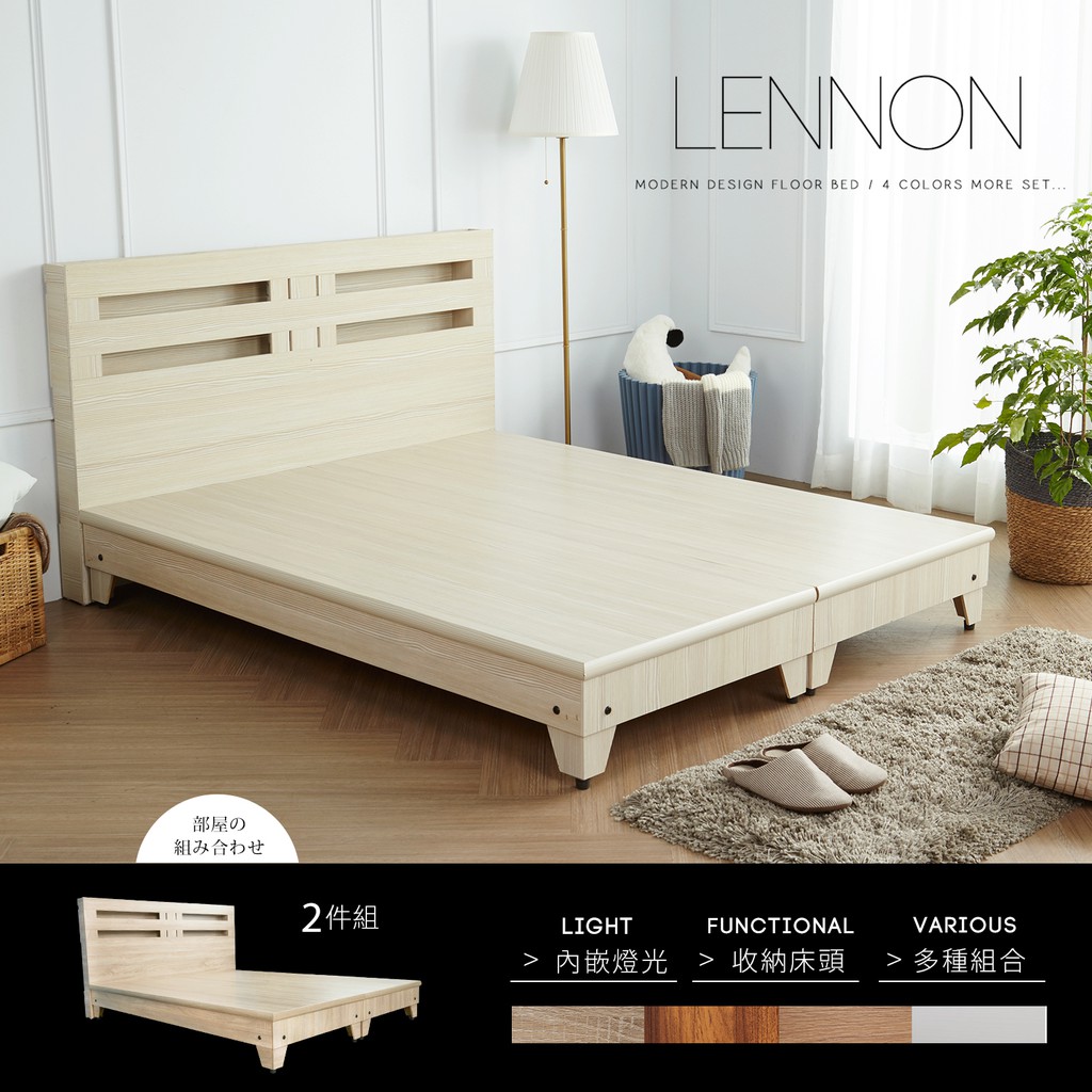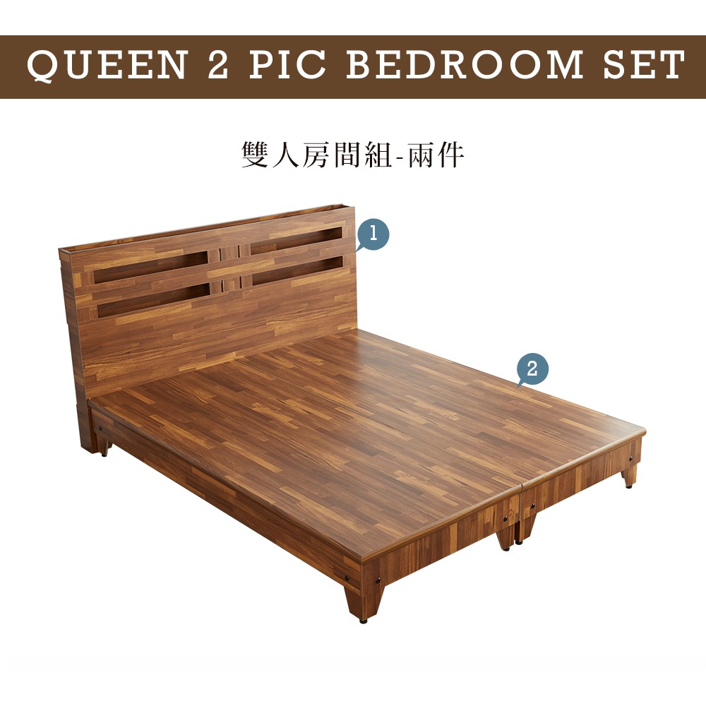 【H&D東稻家居】田園風5尺雙人房間組2件式(床頭+床底)- 床頭片 床底 床架 雙人5尺房間組