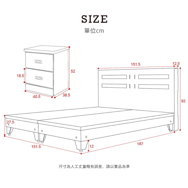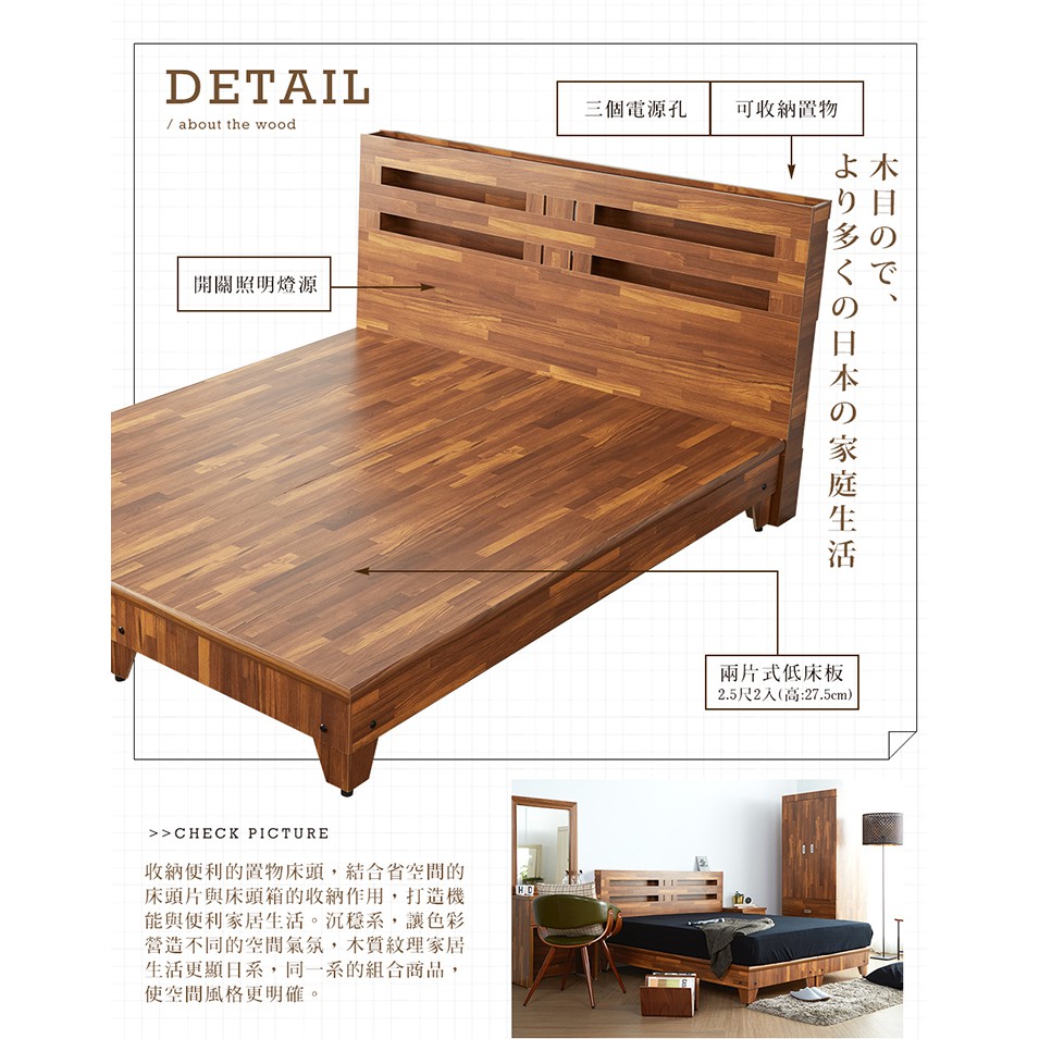 【H&D東稻家居】田園風5尺雙人房間組3件式(床頭+床底+床頭櫃)-2色