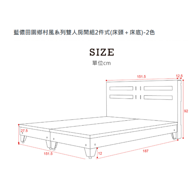 【H&D東稻家居】田園風5尺雙人床組/雙人床底/雙人床頭-3色