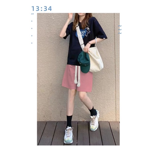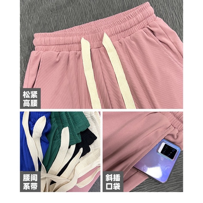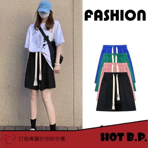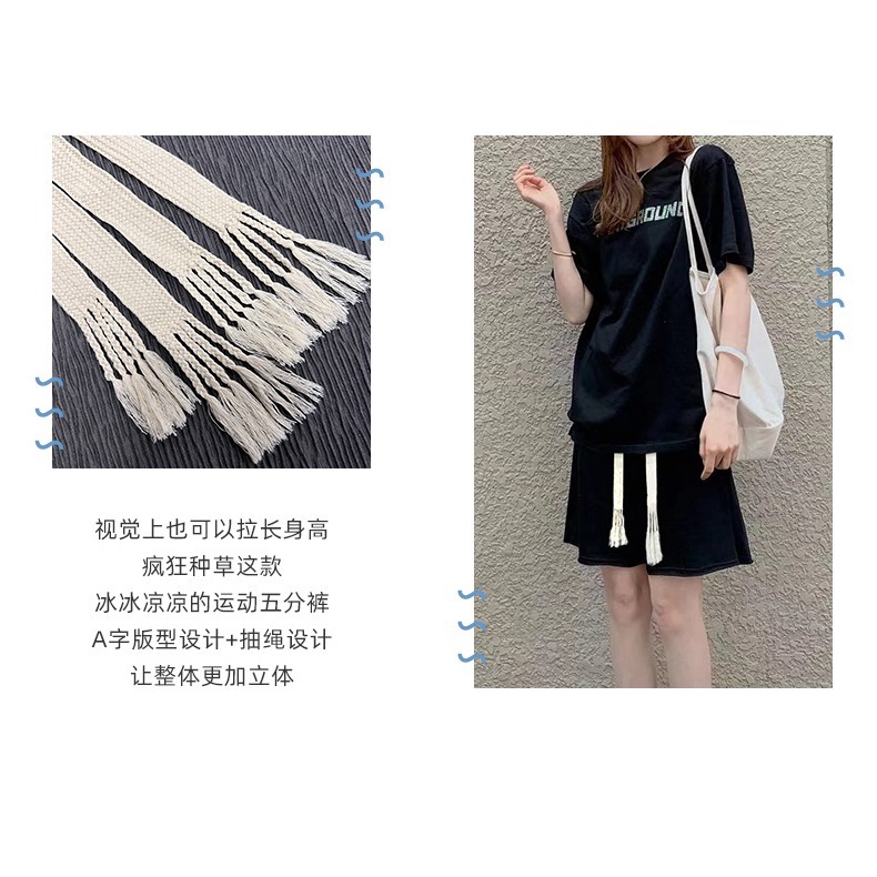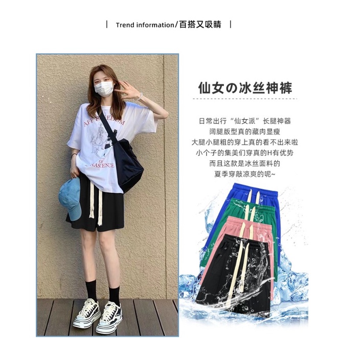 【HOT 本舖】S-2XL 冰絲抽繩短褲女夏季薄款 2022年新款高腰a字闊腿褲運動五分褲潮ins 夏季涼感五分寬褲女