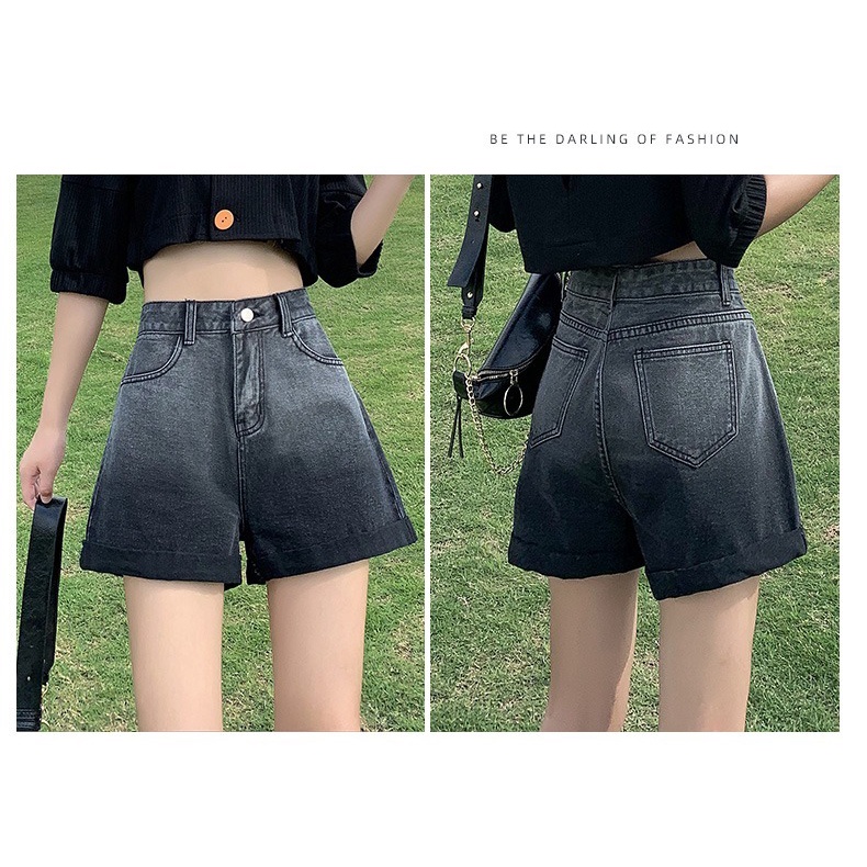 【HOT 本舖】XS-XL 漸變牛仔短褲女 夏季薄款新款時尚高腰寬鬆休閒三分褲熱褲潮 美式街頭漸變熱褲 女生牛仔短褲