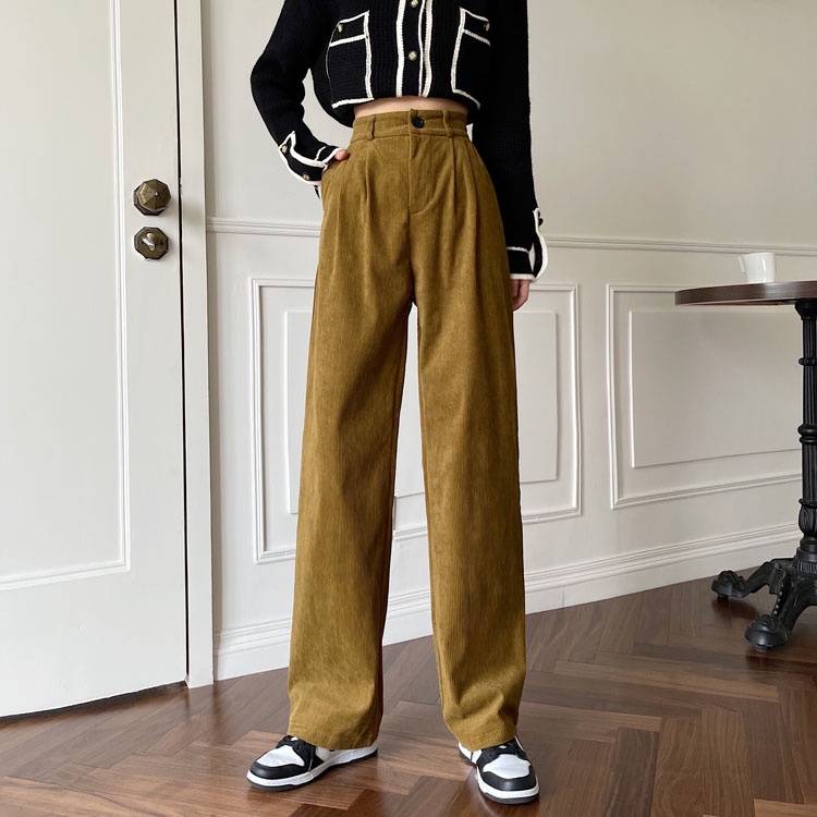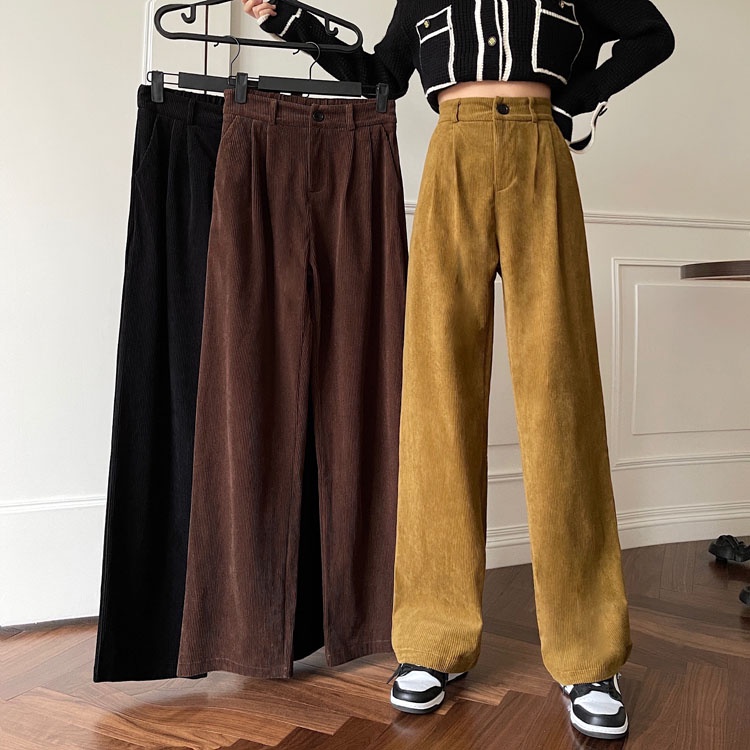 【HOT 本舖】闊腿褲 秋冬新款慵懶鬆緊腰長褲 韓版百搭燈芯絨休閒褲 女生闊腿褲