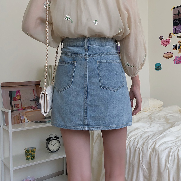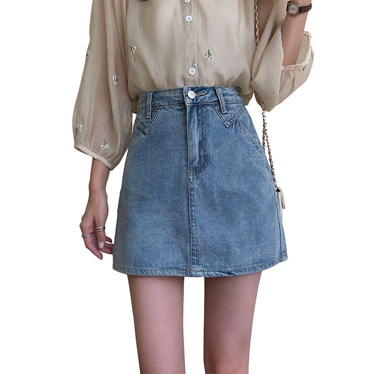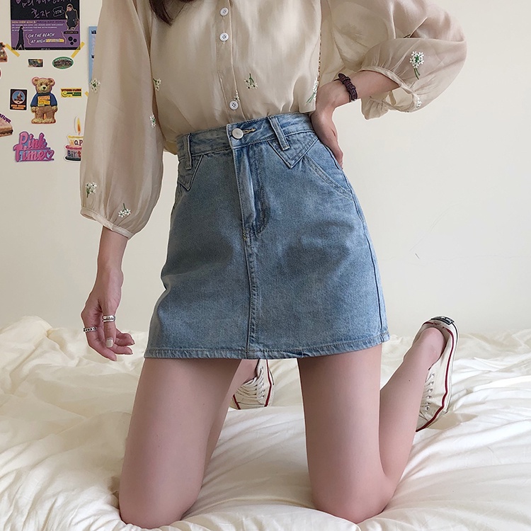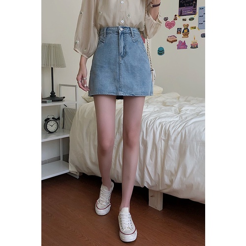 【HOT 本舖】百搭高腰A字裙包臀牛仔裙 韓系ins風高腰牛仔半身裙女顯瘦休閒包臀A字裙