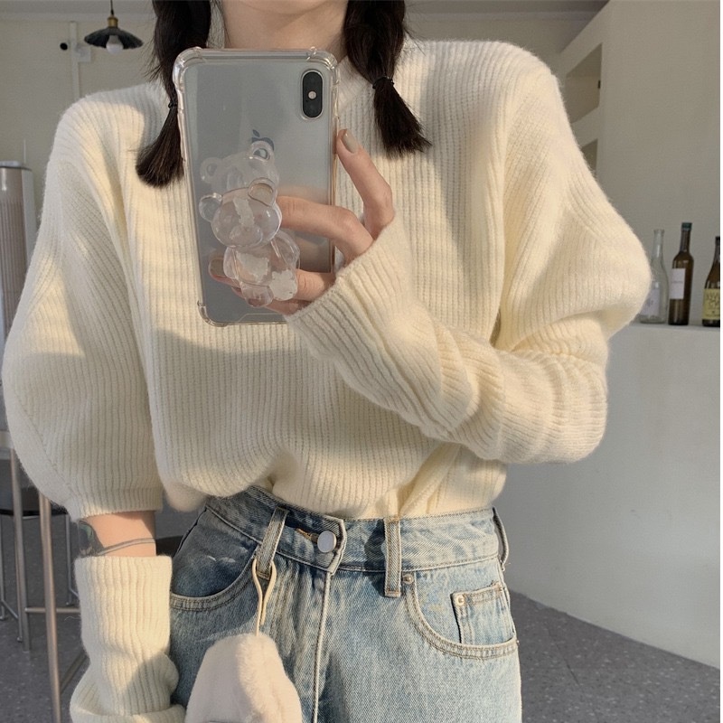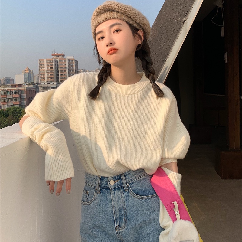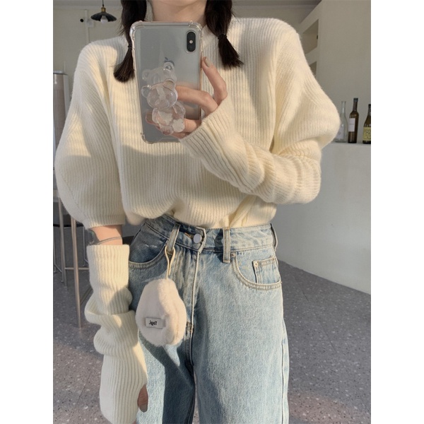 【HOT 本舖】設計感 小眾泡泡袖針織衫 圓領 長袖上衣 純欲風可拆卸袖套上衣女 少女感 上衣服 女生衣著