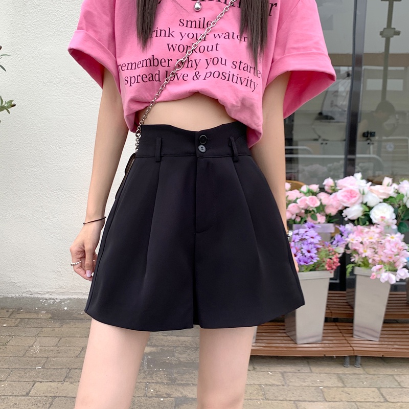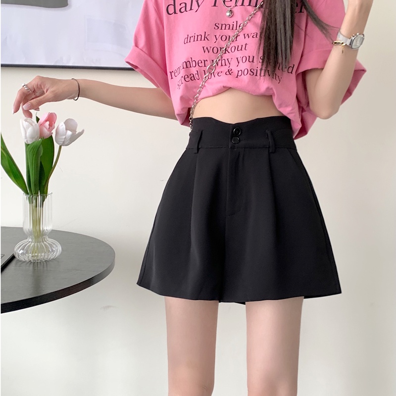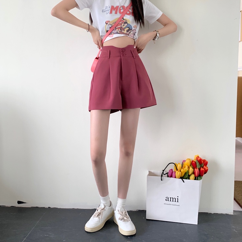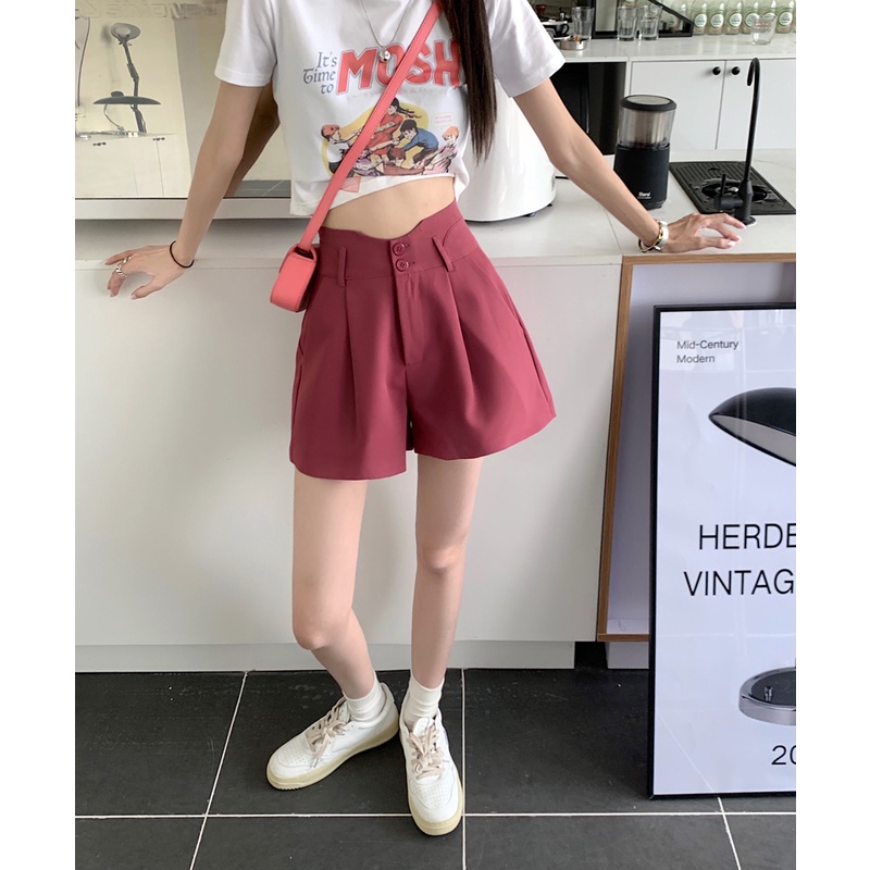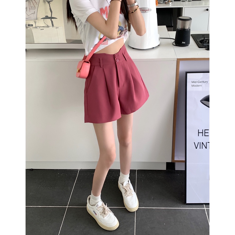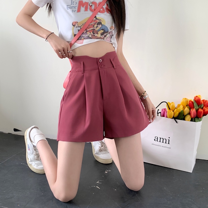 【HOT 本舖】短版西裝短褲 女生短褲 夏季高腰顯瘦寬短褲 夏季新款 韓版休閒短褲 寬鬆闊腿褲 素色褲子 女褲
