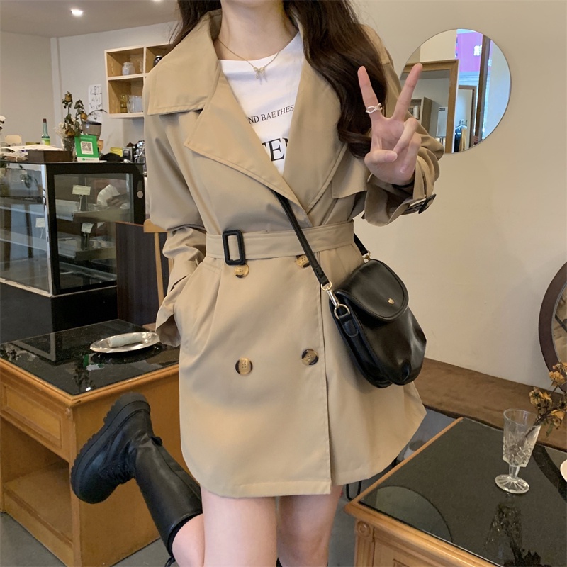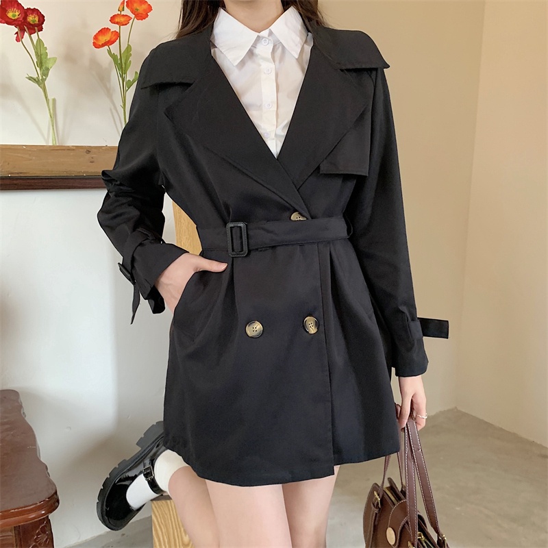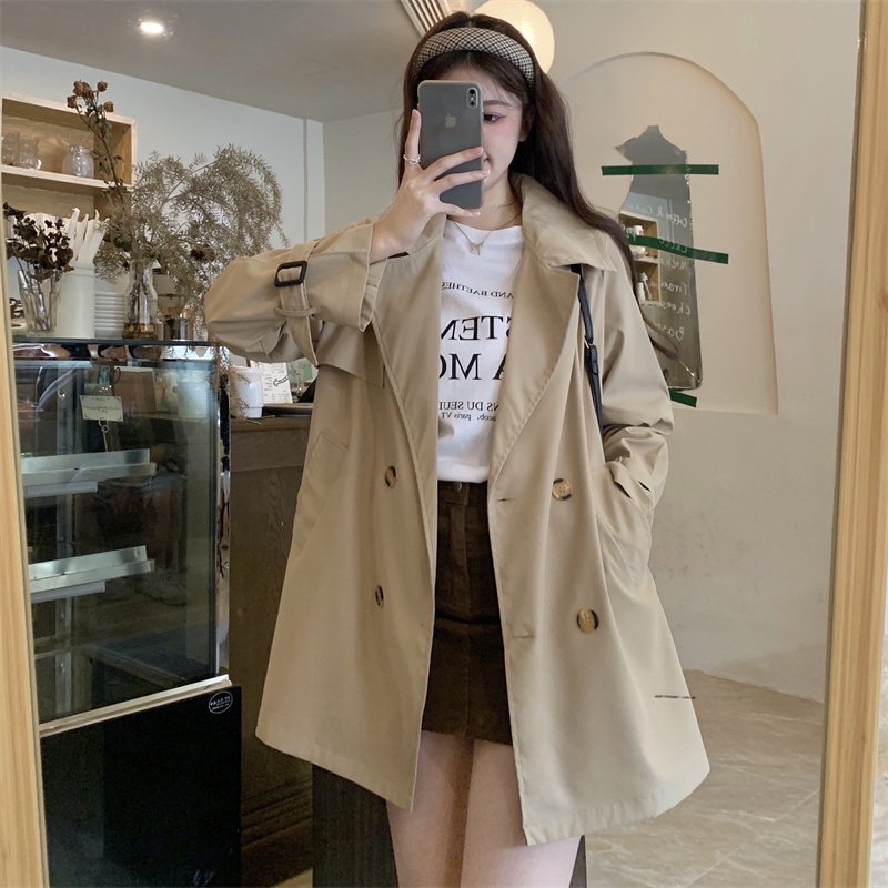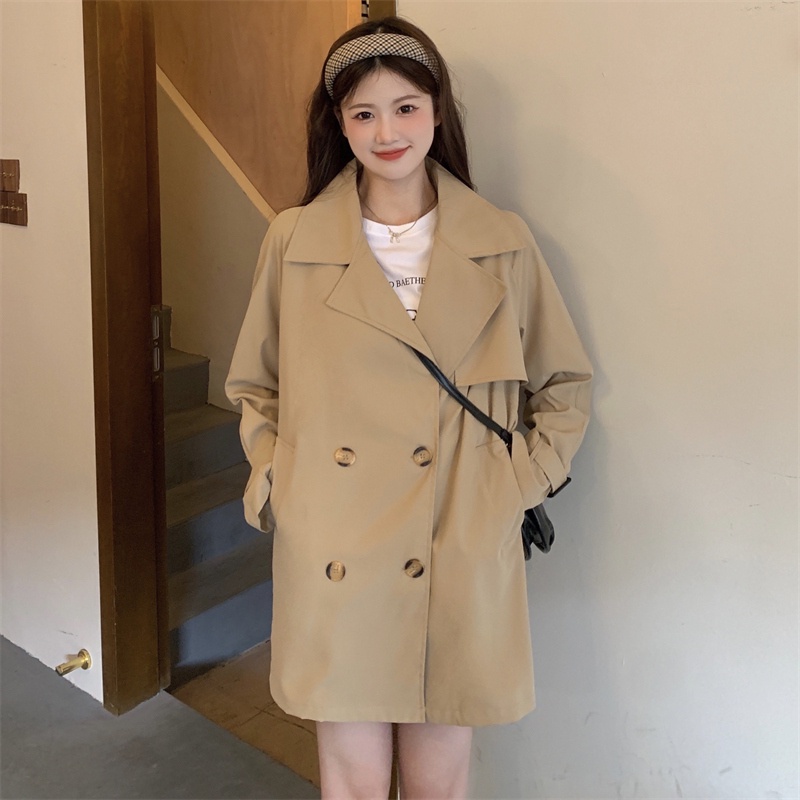 【HOT 本舖】S-2XL 風衣外套 防風長袖外套 中長版外套 秋冬新款 韓版翻領復古風Chic氣綁帶