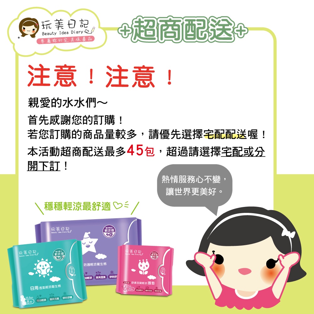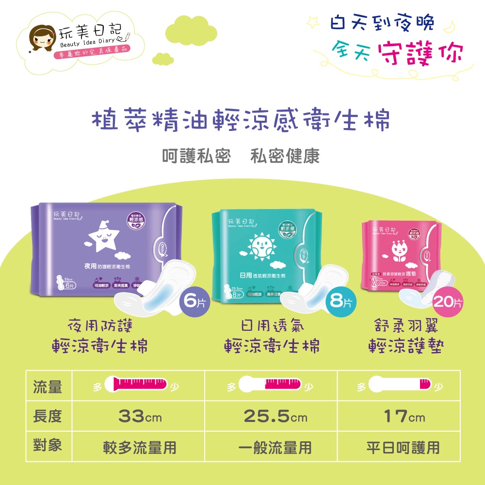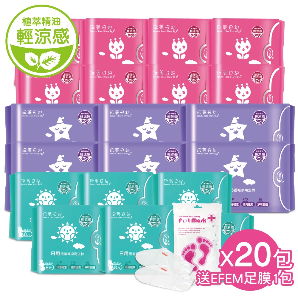 玩美日記 透氣輕涼衛生棉 20 包(加長護墊/加長日用/夜用)(送EFEM足膜1包)
