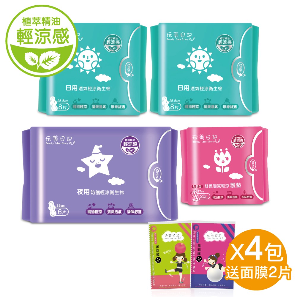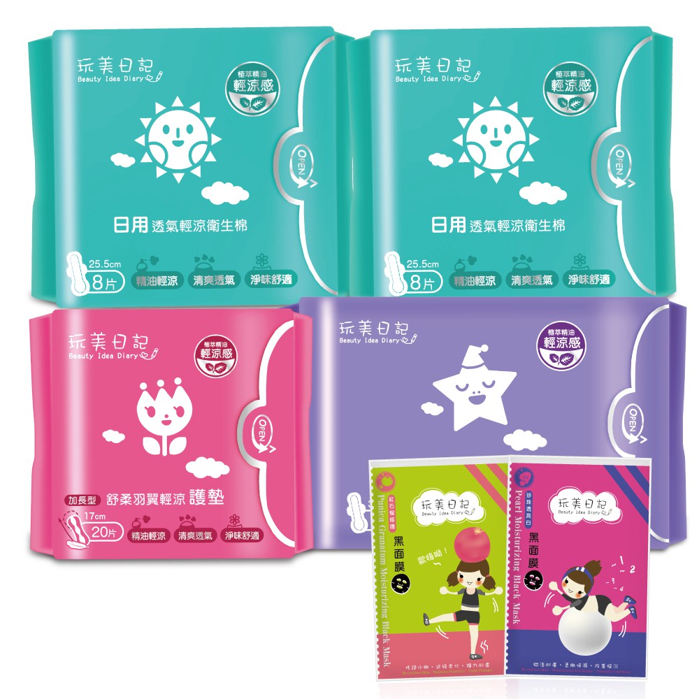 玩美日記 透氣輕涼衛生棉 4 包(護墊/日用/夜用)(加送黑布面膜2片)