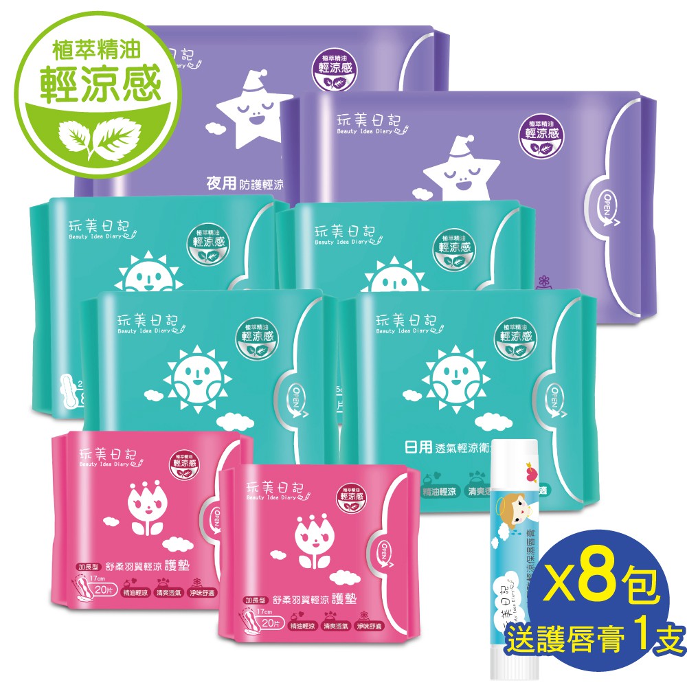 玩美日記 透氣輕涼衛生棉 8 包(加送輕涼護唇膏1支)