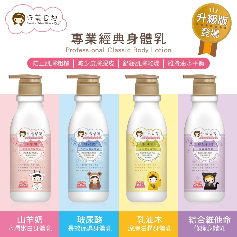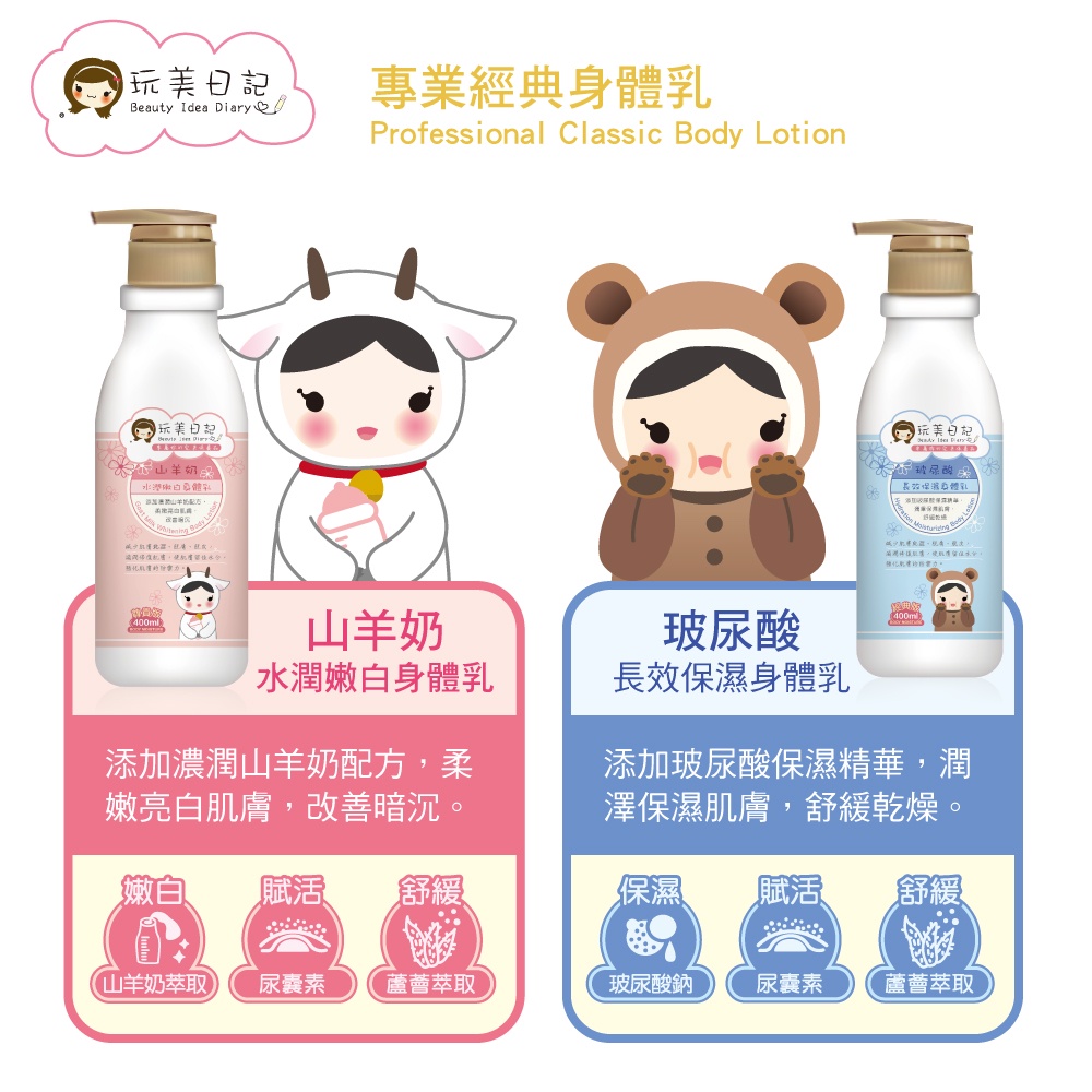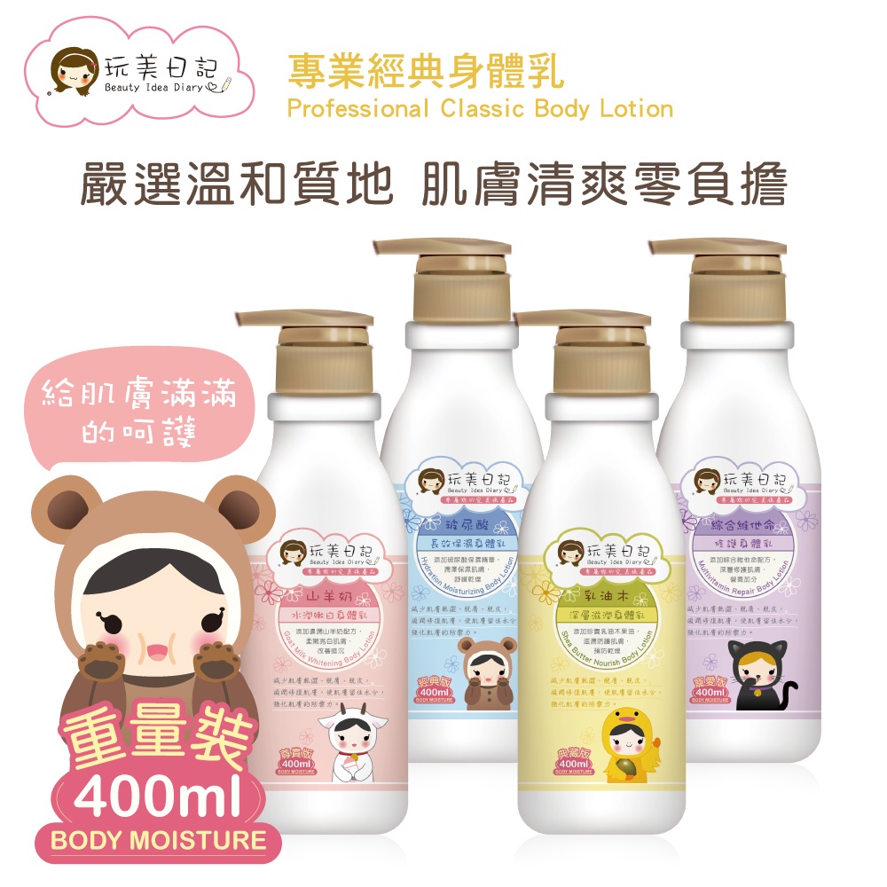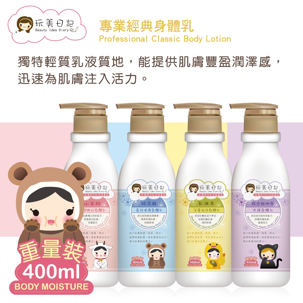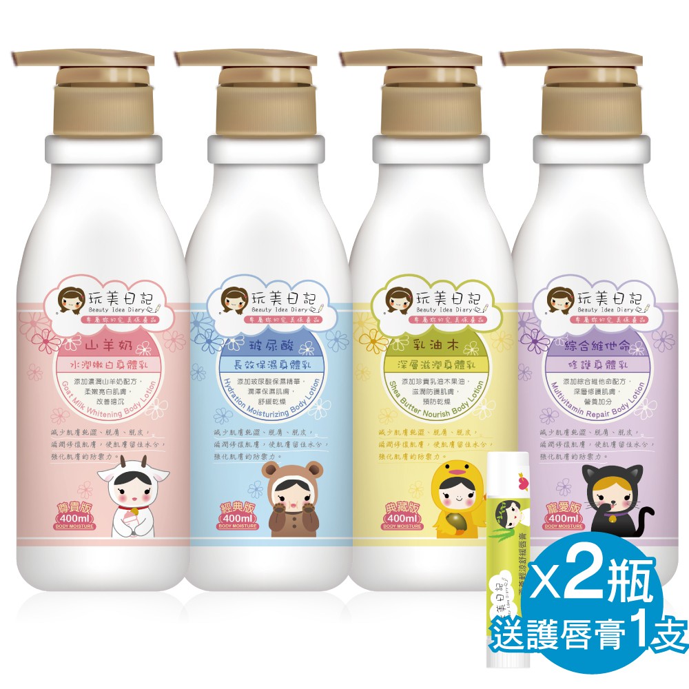 玩美日記 專業經典身體乳 2 瓶(山羊奶/乳油木/玻尿酸/維他命)(加送輕涼護唇膏1支)