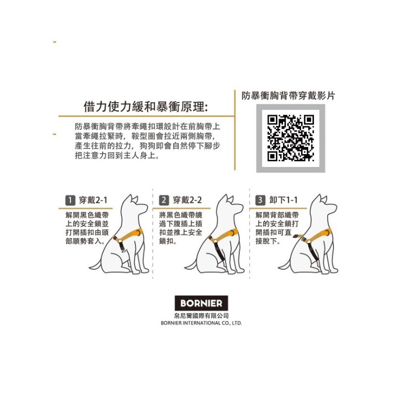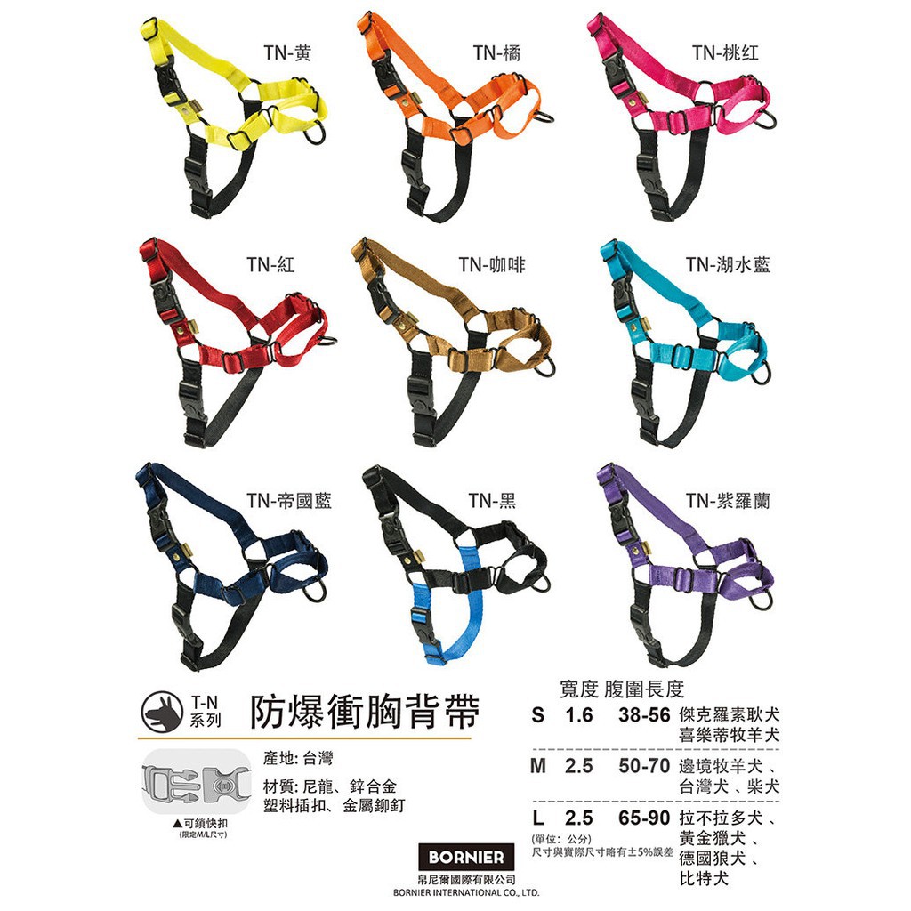 BORNIER 帛尼爾 前拉式防爆衝胸背帶 S 號 M 號 L號 / 共九色