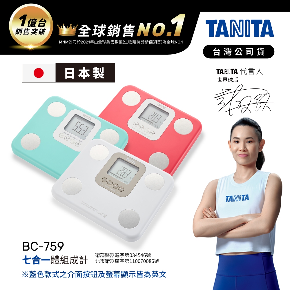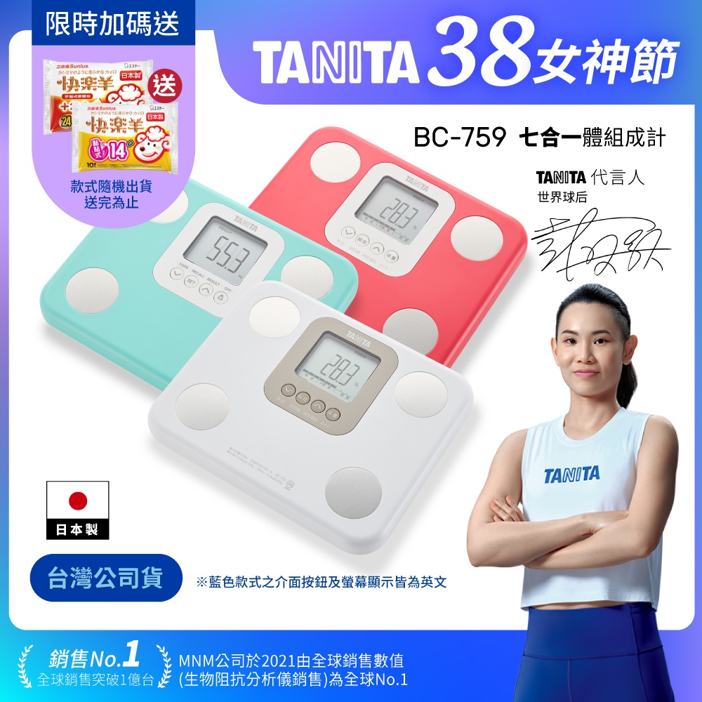 【送暖包】日本 TANITA 七合一 體組成計 體脂計 BC-759 (3色任選)-台灣公司貨(日本製)