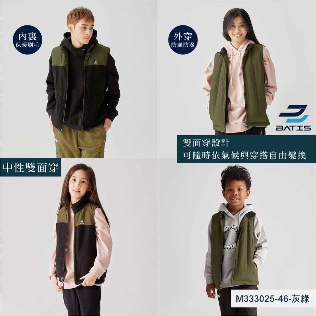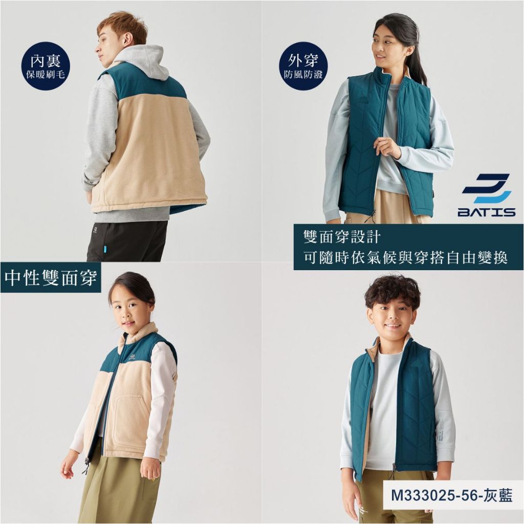 BATIS 秋冬 台灣設計雙面穿防風抓絨背心 / 現貨 M333025 兒童背心 女童背心 運動背心 長袖背心 M33