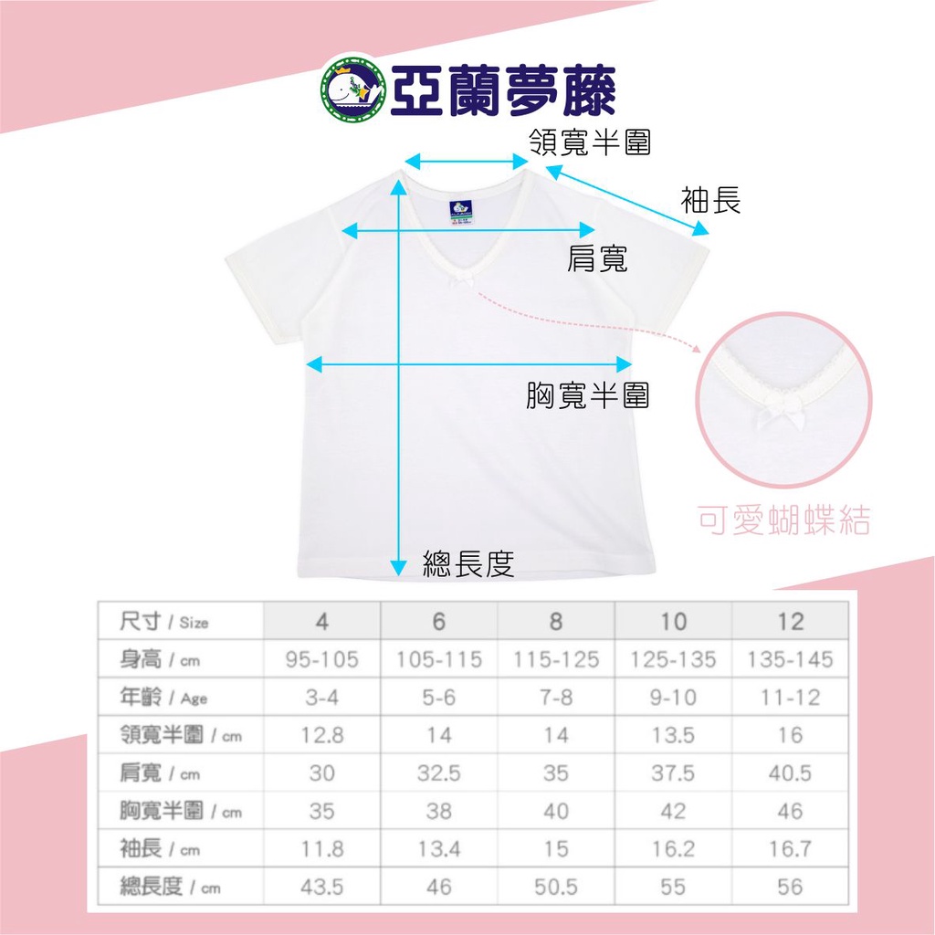 亞蘭夢藤 台灣製 女童短袖內衣 / 現貨 女童內衣 兒童內衣 女童 白T恤 彈性內衣 兒童衛生衣 女童衛生衣 3926