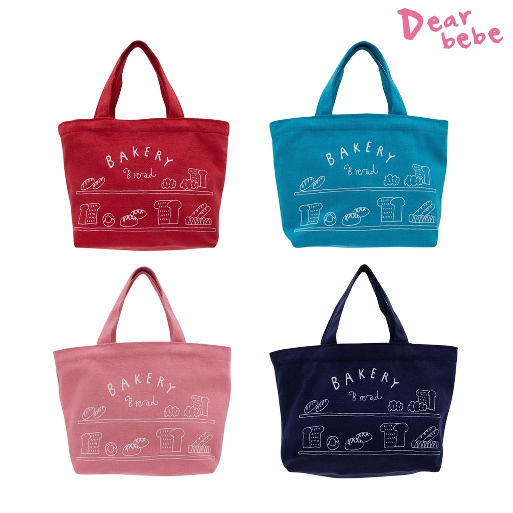 【日系雜貨】BAKERY麵包店 帆布手提包 帆布小包 帆布小提袋 紅色小包 粉色提袋 藍色小袋