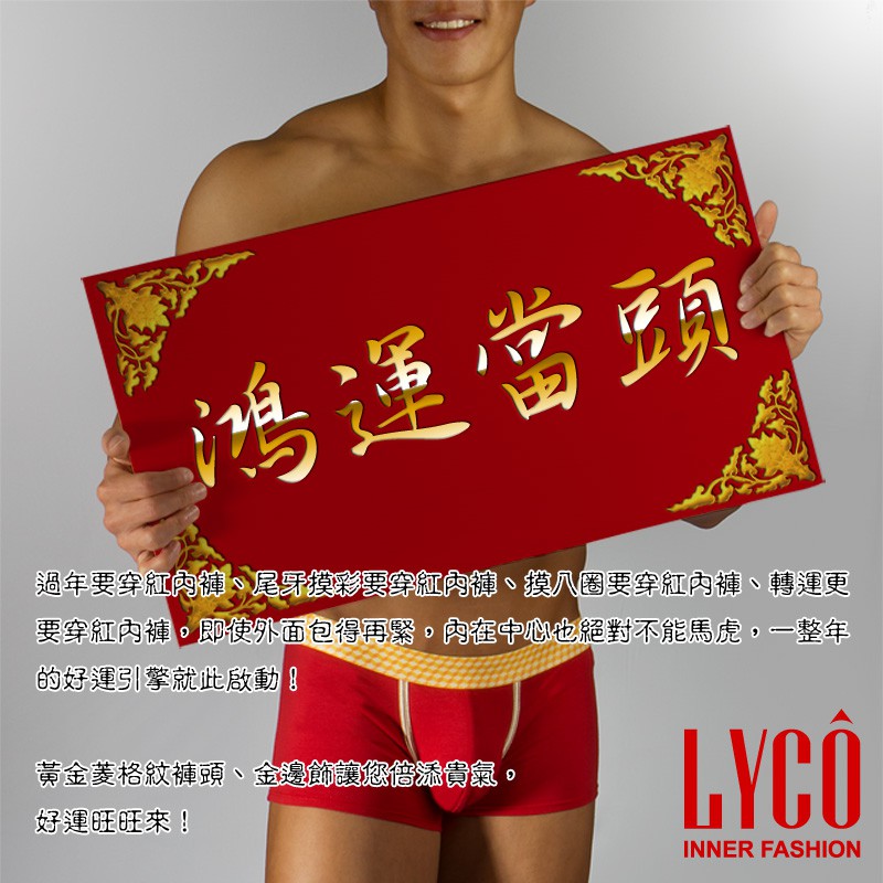 LYCO男內褲‧鴻運精梳棉囊袋四角平口褲3件組禮盒