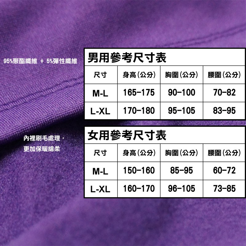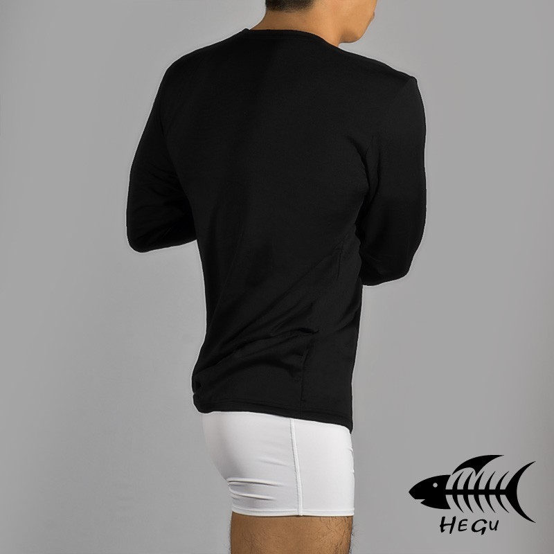 HEGU男刷毛圓領高彈力保暖衣 共有黑白兩色可選擇
