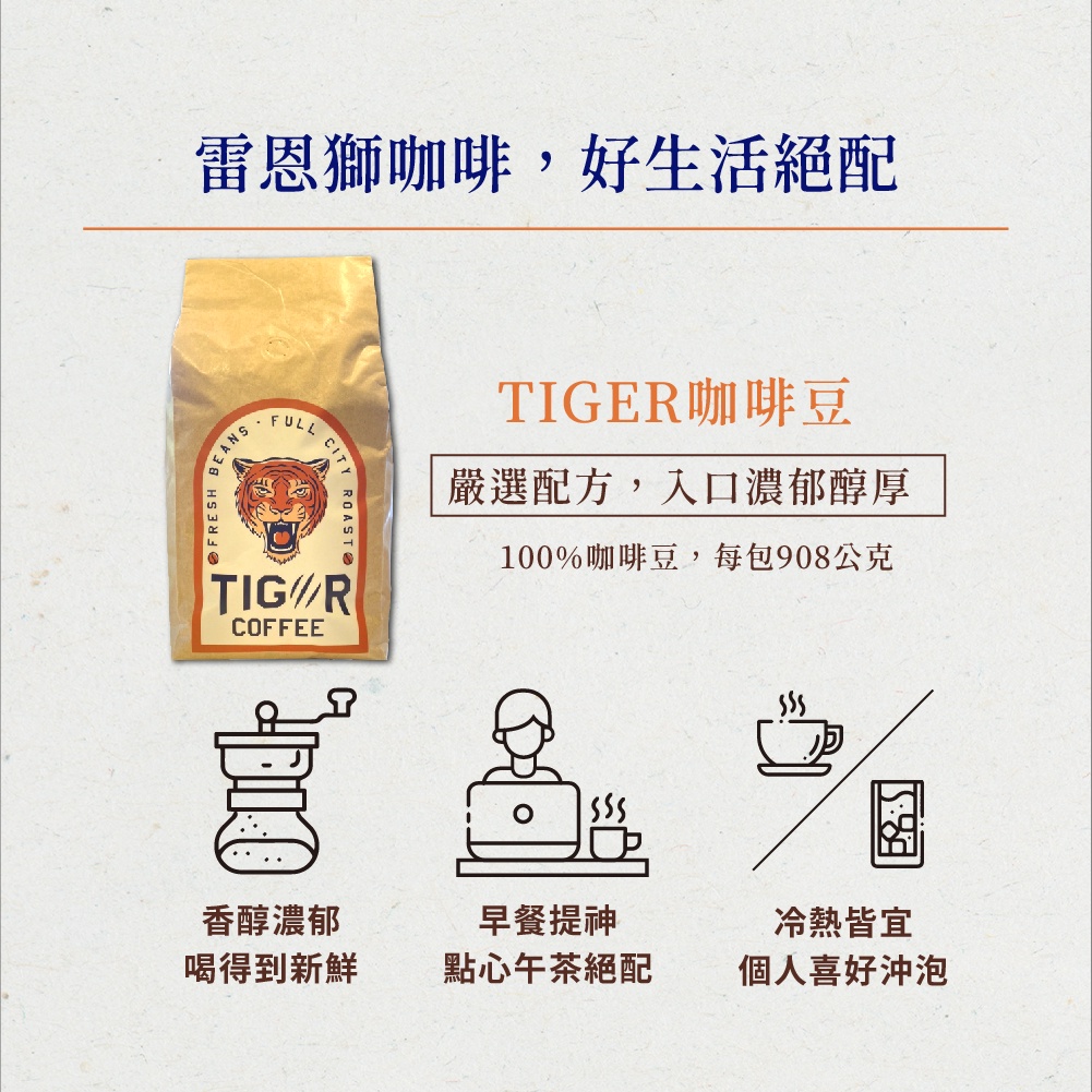 雷恩獅 | 咖啡豆 2磅 TIGER 自家烘焙 義式 手沖 中深焙 綜合 配方豆 黑巧克力風味