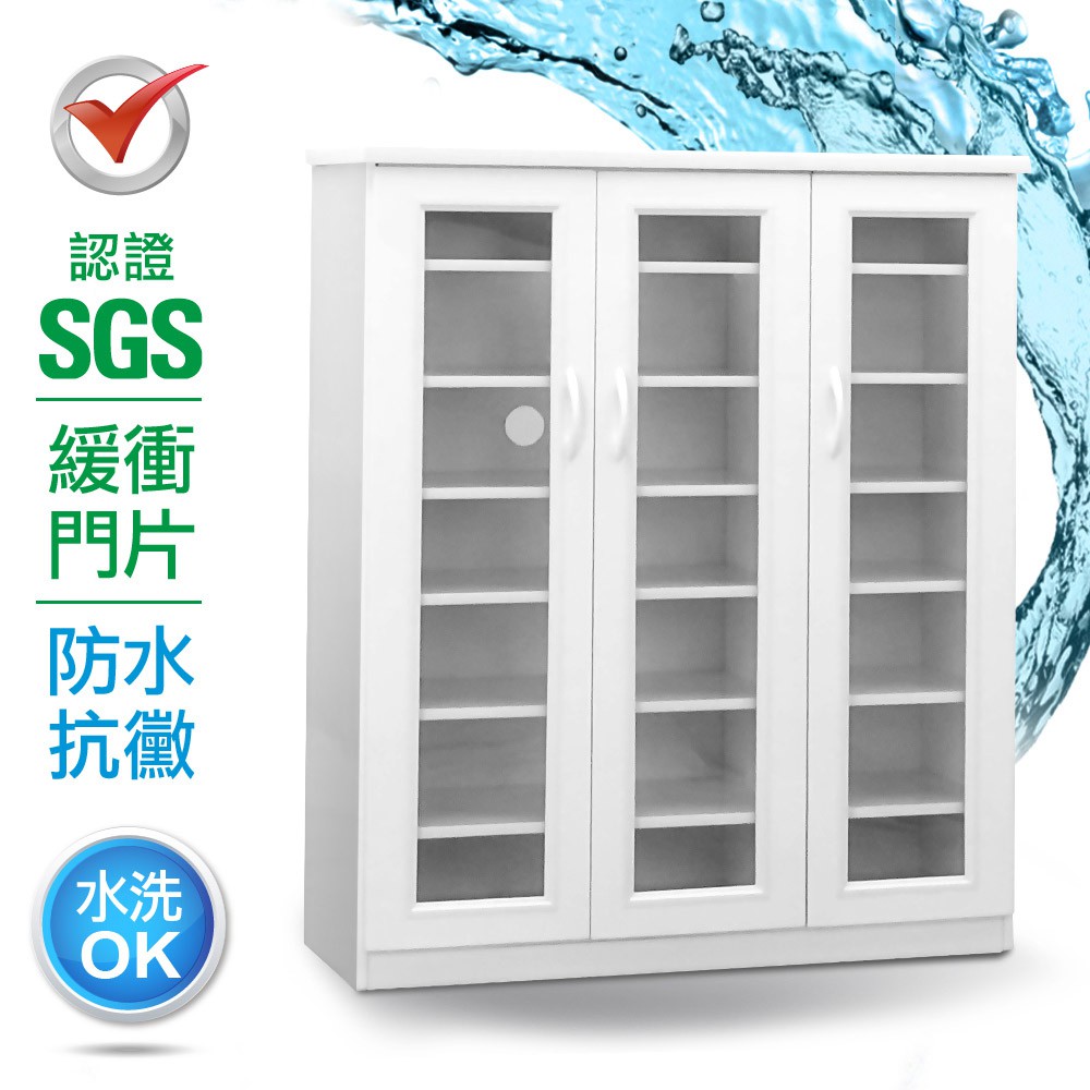 IHouse-【SGS認證塑鋼】緩衝防潮抗蟲蛀3開門收納鞋櫃