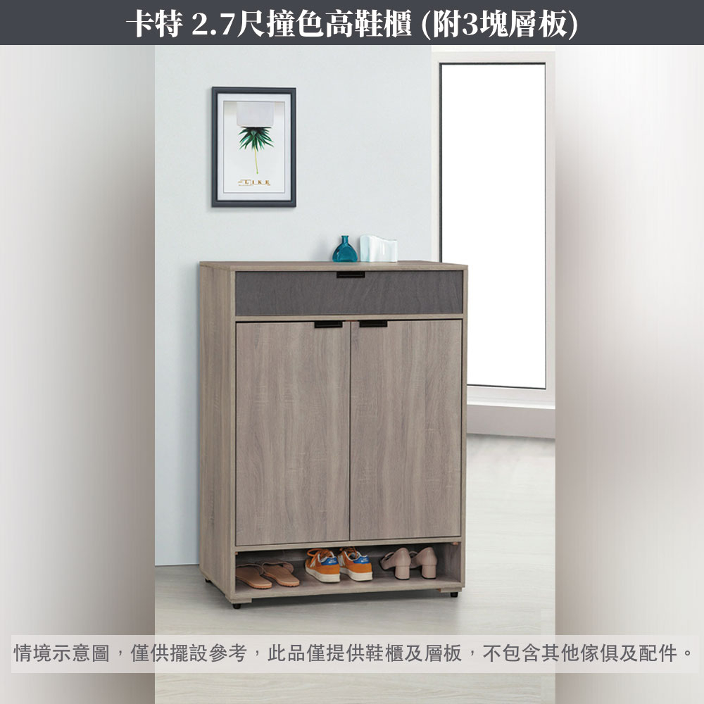 IHouse-卡特 2.7尺撞色高鞋櫃(附3塊層板)