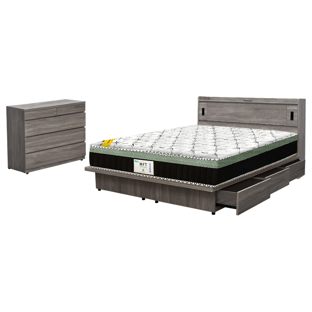 IHouse-品田 房間4件組(床頭箱+抽屜底+床墊+斗櫃)
