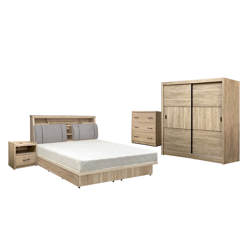 IHouse-特洛伊 臥室6件組(床箱+抽屜底+天絲墊+床頭櫃+衣櫃+斗櫃)