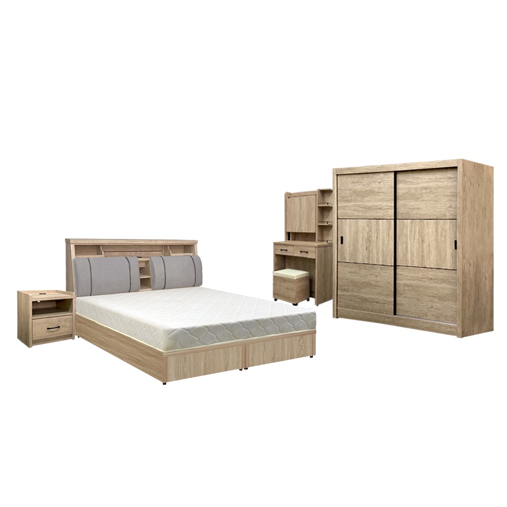 IHouse-特洛伊 臥室6件組(床箱+床底+天絲墊+床頭櫃+衣櫃+化妝台含椅)
