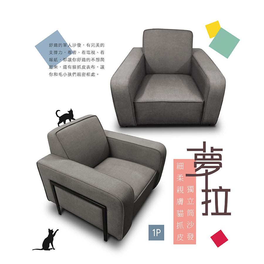 IHouse-夢拉 細柔親膚貓抓皮獨立筒單人沙發