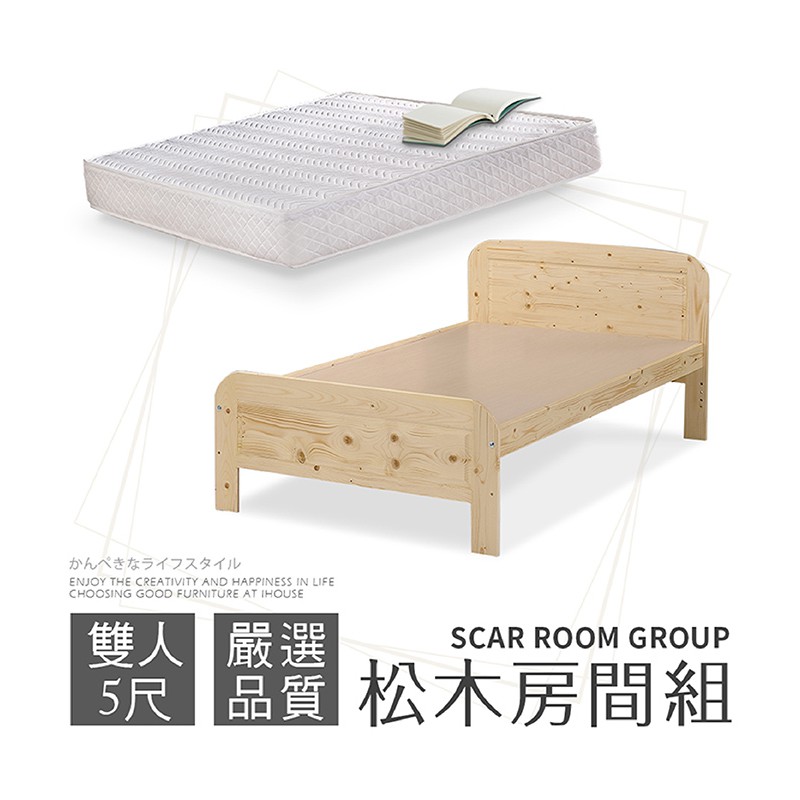 IHouse-斯卡 房間2件組(松木床架+獨立筒床墊)