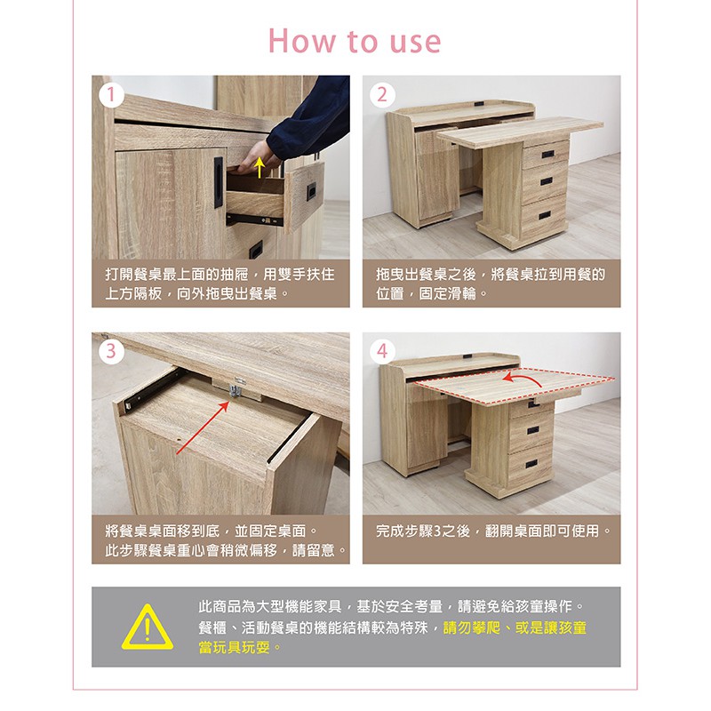 IHouse-匠人 MIT免組裝 可移動式4尺2件摺疊餐桌櫃