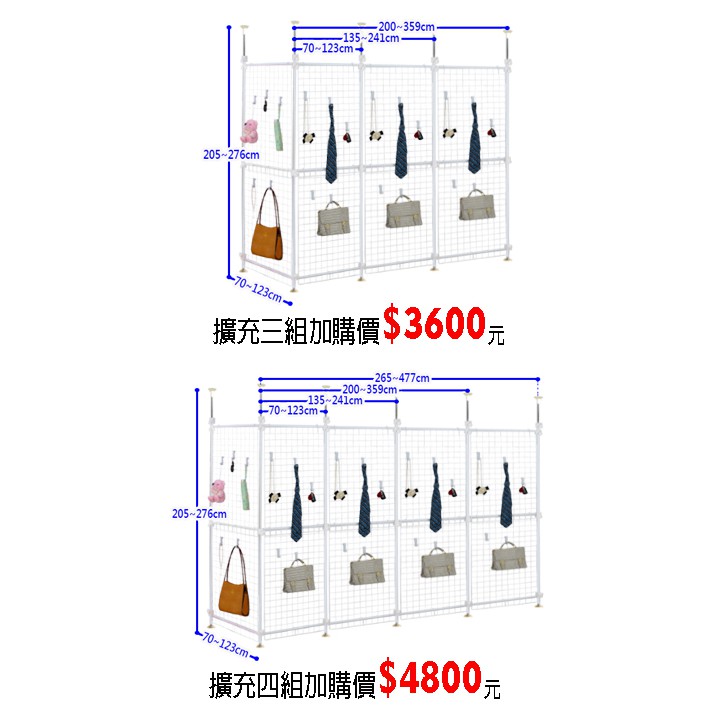 【巴塞隆納】網架屏風-123頂天立地伸縮網架置物架(可伸縮)