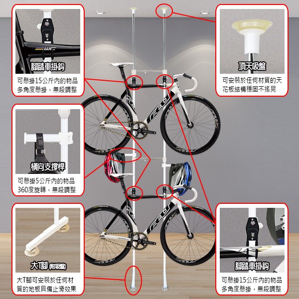 【巴塞隆納】BY-02-01腳踏車架-頂天立地自行車架 立車架 單車架 腳踏車架防刮(可掛2台單車)