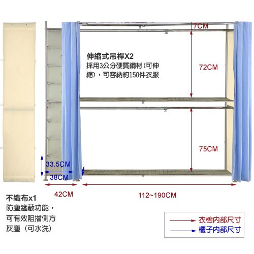 【巴塞隆納】AH-47伸縮衣櫥(附八層櫃)