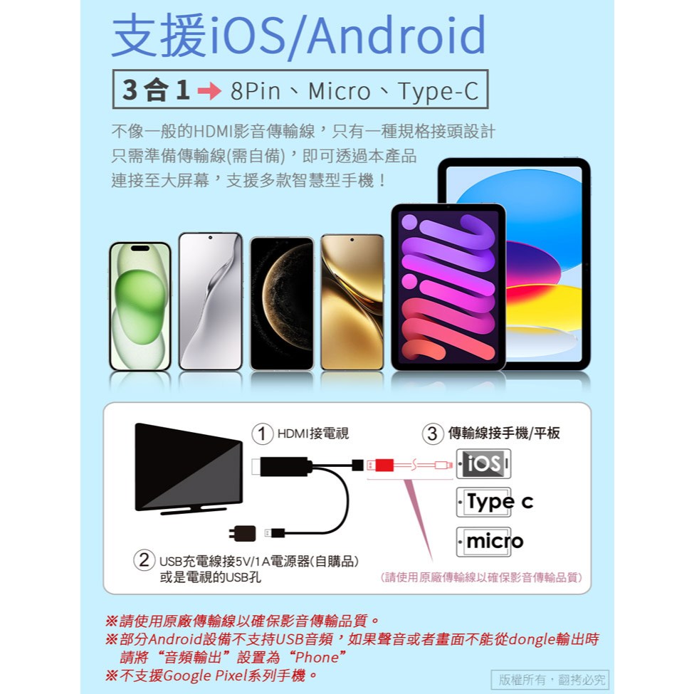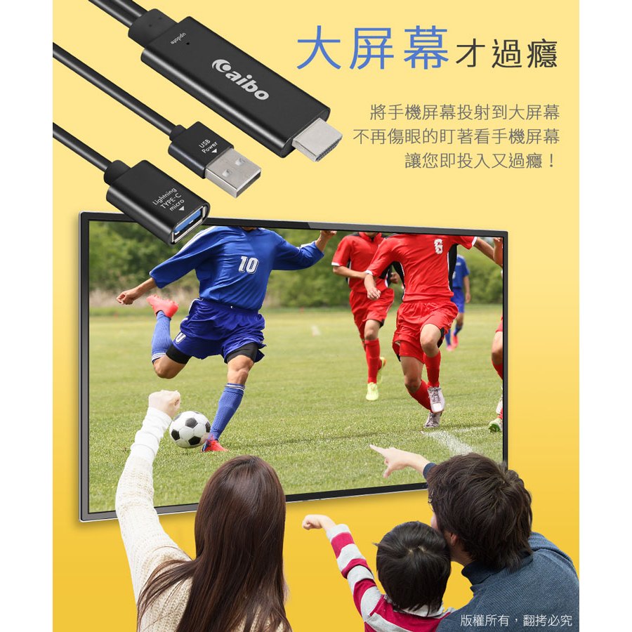 aibo 三合一 手機HDMI影音傳輸線 2M【現貨】iOS Type-C Micro HDMI影音線 1080HD
