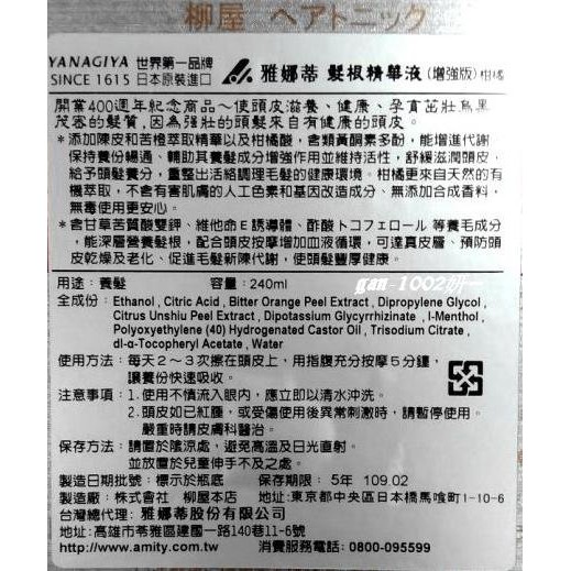 anagiya 柳屋 Hair Tonic 雅娜蒂髮根營養液 增強版 柑橘 240ml 公司貨 養髮液 頭皮水 健髮