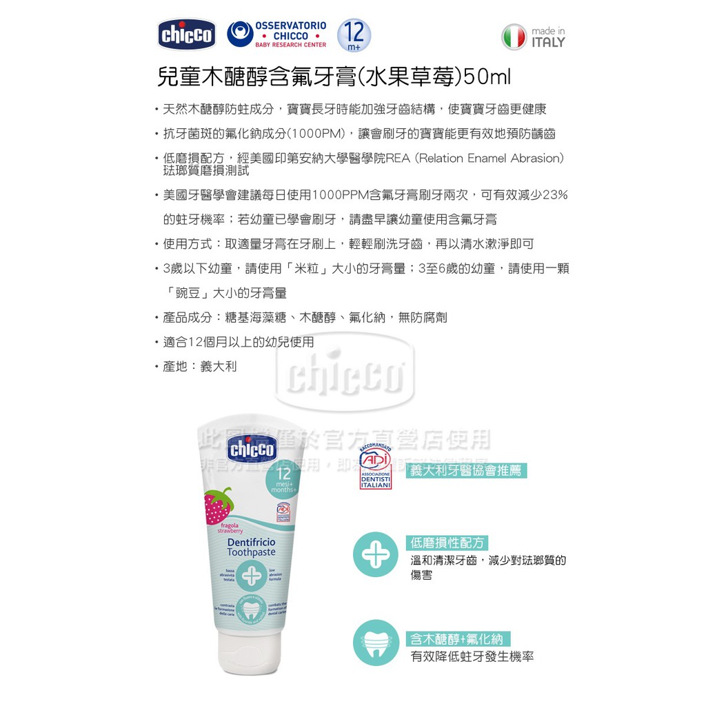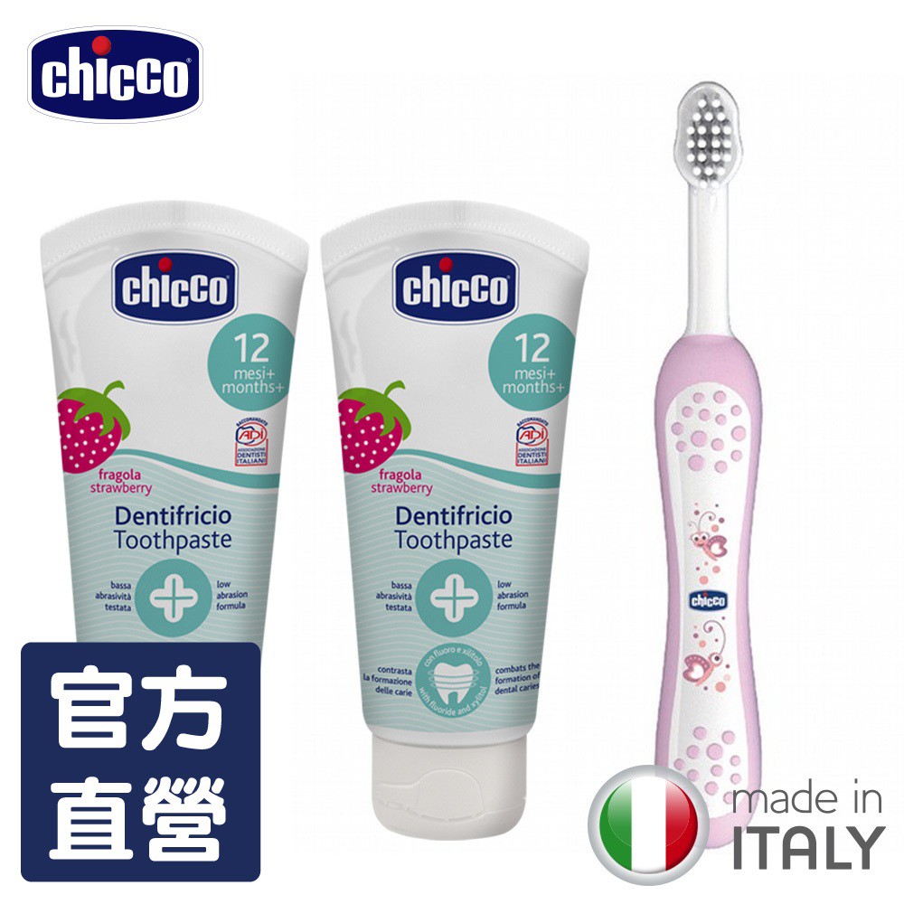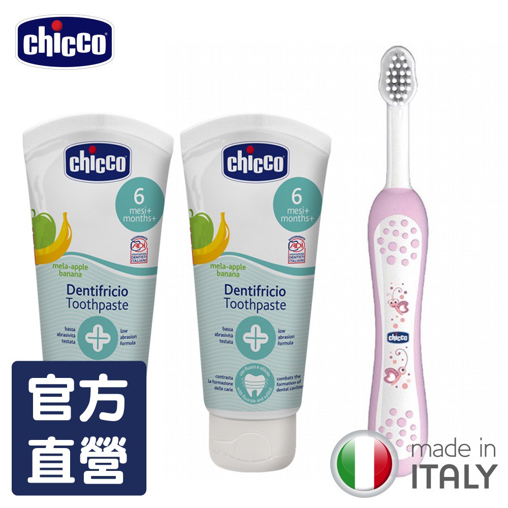 chicco-兒童含氟牙膏牙刷組-(水果草莓/蘋果香蕉) 適合幼兒使用 產地義大利