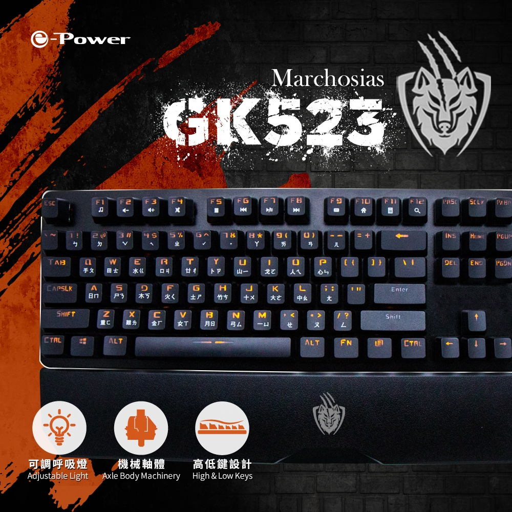 e-Power GK523 有線 電競鍵盤 機械式 中文鍵帽 背光鍵盤 青軸 黑色