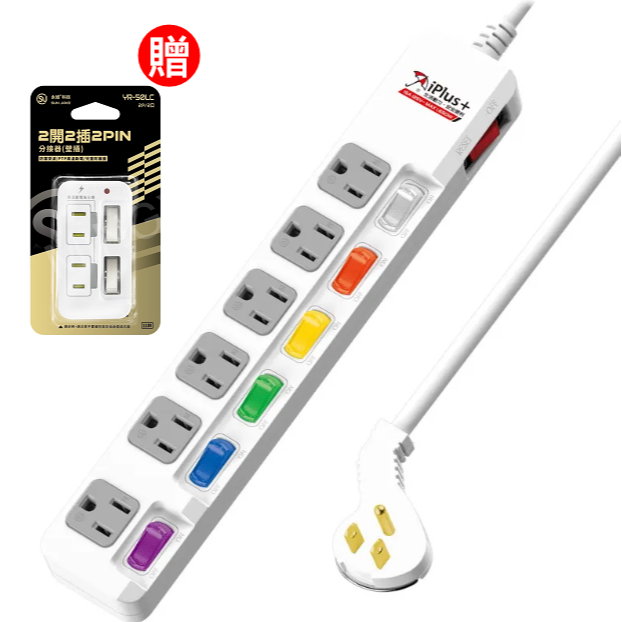 iPlus+ 保護傘 7切6座3P延長線 6尺 9尺 15尺 21尺 台灣製造 新安規 平貼式省力插頭 PU-3765