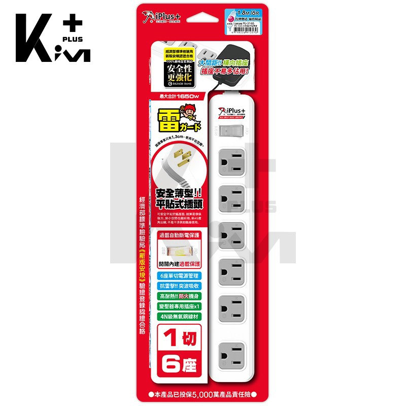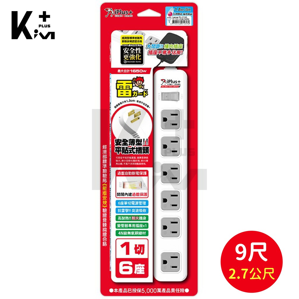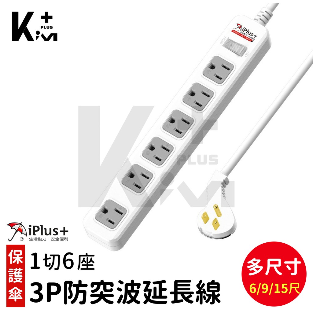 iPlus+保護傘 最新安規 15A防突波延長線 (3孔1切6座) PU-3165【Kim Plus】