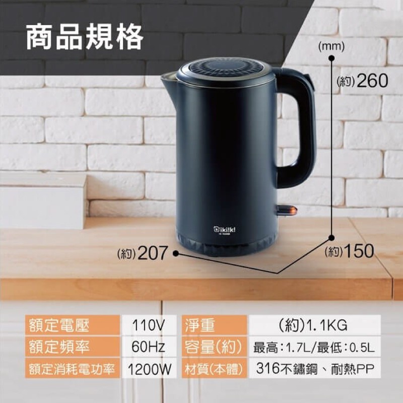 ikiiki 伊崎 1.7公升不鏽鋼雙層防燙快煮壼 IK-TK4203 現貨 廠商直送