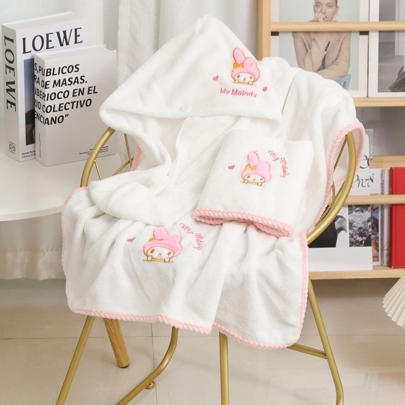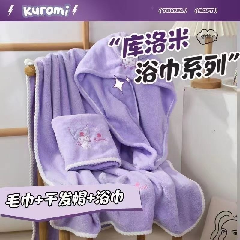 ins庫洛米浴巾三件式 卡通浴巾不掉毛吸水家用學生可愛女速乾毛巾